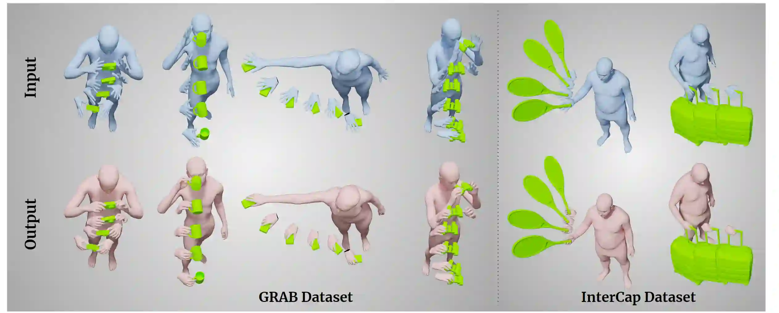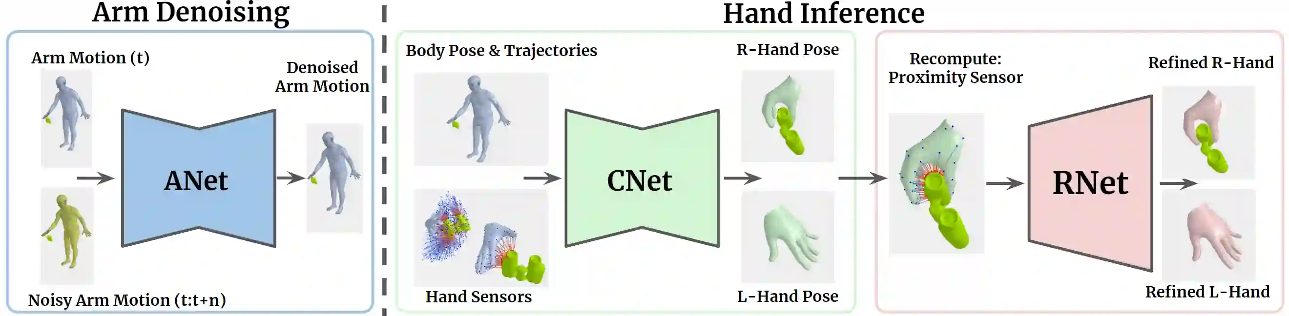 Hands are dexterous and highly versatile manipulators that are central to how humans interact with objects and their environment. Consequently, modeling realistic hand-object interactions, including the subtle motion of individual fingers, is critical for applications in computer graphics, computer vision, and mixed reality. Prior work on capturing and modeling humans interacting with objects in 3D focuses on the body and object motion, often ignoring hand pose. In contrast, we introduce GRIP, a learning-based method that takes, as input, the 3D motion of the body and the object, and synthesizes realistic motion for both hands before, during, and after object interaction. As a preliminary step before synthesizing the hand motion, we first use a network, ANet, to denoise the arm motion. Then, we leverage the spatio-temporal relationship between the body and the object to extract two types of novel temporal interaction cues, and use them in a two-stage inference pipeline to generate the hand motion. In the first stage, we introduce a new approach to enforce motion temporal consistency in the latent space (LTC), and generate consistent interaction motions. In the second stage, GRIP generates refined hand poses to avoid hand-object penetrations. Given sequences of noisy body and object motion, GRIP upgrades them to include hand-object interaction. Quantitative experiments and perceptual studies demonstrate that GRIP outperforms baseline methods and generalizes to unseen objects and motions from different motion-capture datasets.