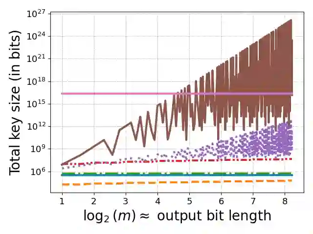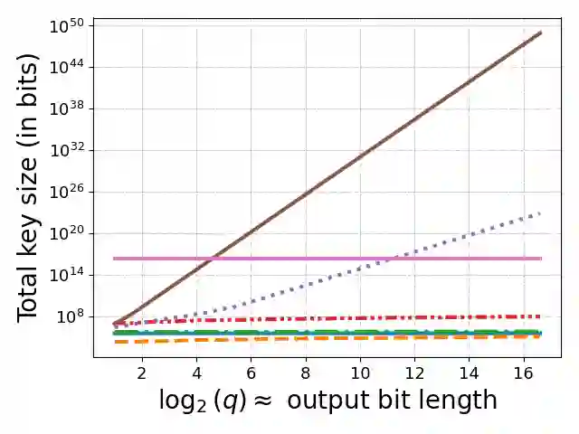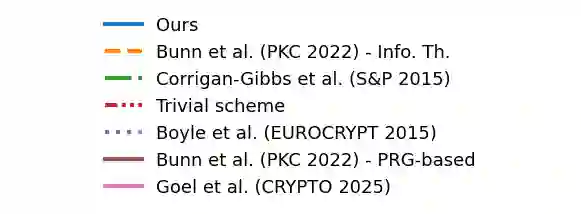 翻译:函数秘密共享(FSS)方案能够高效地共享秘密函数。针对点函数的方案(称为分布式点函数,DPF)因其在私有信息检索、匿名通信和机器学习等众多应用中的价值,成为FSS研究的核心。虽然两方DPF已实现密钥规模对数级的方案,但多方DPF的发展较为有限:现有方案的密钥规模为$O(\sqrt{N})$(其中$N$为函数定义域大小)和/或包含指数级因子。本文提出一种基于DDH的技术,能够缩减现有多方方案的密钥规模。特别地,我们构建了一个诚实多数场景下的DPF方案,其密钥规模为$O(\sqrt[3]{N})$。实验评估表明,在现实问题规模下,本方案的密钥规模比现有最优方案缩小达10倍。最后,我们将该技术扩展至支持比较函数的方案。