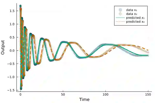 翻译:最近出现了神经差异方程式,作为数据驱动/混合的灵活方法来模拟时间序列数据,这项工作实验性地证明,如果数据含有振动,那么神经差异方程式的标准安装可能会使没有描述数据的轨迹平坦下来。然后我们引入多种射击方法,并成功演示这一方法,将神经差异方程式与标准方法不合适的两个数据集(合成和实验)相匹配。如果使用惩罚或强化拉格朗江方法,可以满足多次射击带来的限制。