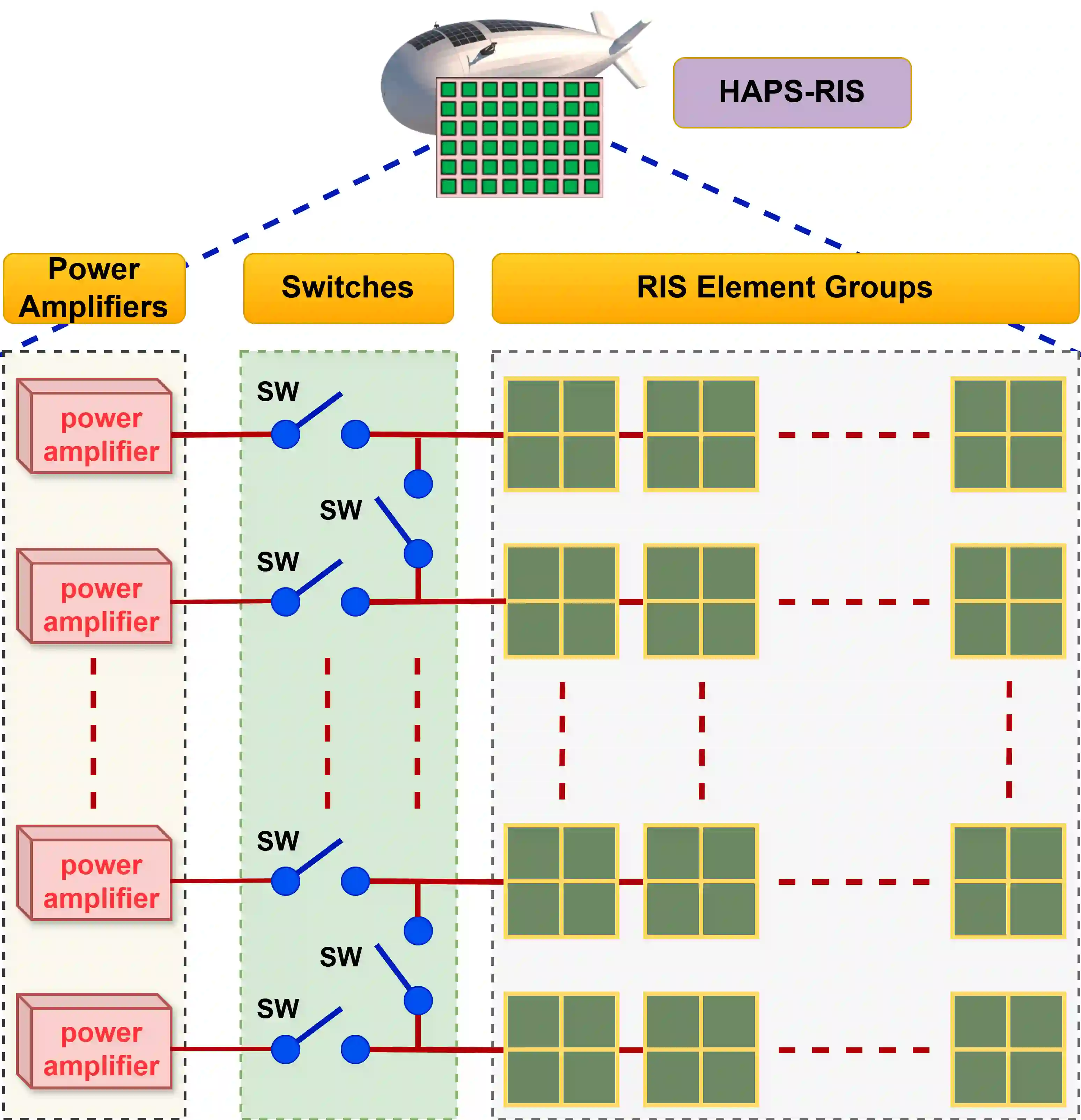 翻译:可靠且具有韧性的通信对于灾后恢复和应急响应至关重要,然而地面基础设施在大规模自然灾害期间常常失效。本文提出了一种高空平台站与可重构智能表面辅助的物联网通信系统,用于恢复受灾区域的网络连接。分布式物联网传感器收集关键环境数据,并通过短距离链路转发至附近的网关,而HAPS-RIS系统则为这些网关提供回程链路。为了克服高空中无源RIS严重的双程路径损耗,我们提出了一种动态可调的子连接有源RIS架构,该架构可通过开关机制重新配置连接到每个功率放大器的单元数量。仿真结果表明,与传统的无源RIS方案相比,该架构在下行和上行数据速率以及系统能效方面均取得了显著提升。此外,地面站发射功率每增加1 dB,网关数据速率可提升约20-30 Mbps。这些发现证实,HAPS-RIS技术为6G非地面网络中具有韧性的物联网回程提供了一种高效且节能的解决方案,尤其是在视距链路占主导的HAPS-地面回程场景中。