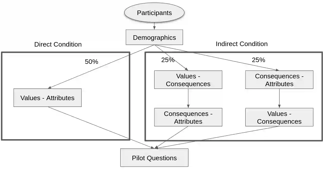 The present work is part of a research line seeking to uncover the mysteries of what lies behind people's musical preferences in order to provide better music recommendations. More specifically, it takes the angle of personal values. Personal values are what we as people strive for, and are a popular tool in marketing research to understand customer preferences for certain types of product. Therefore, it makes sense to explore their usefulness in the music domain. Based on a previous qualitative work using the Means-End theory, we designed a survey in an attempt to more quantitatively approach the relationship between personal values and musical preferences. We support our approach with a simulation study as a tool to improve the experimental procedure and decisions.