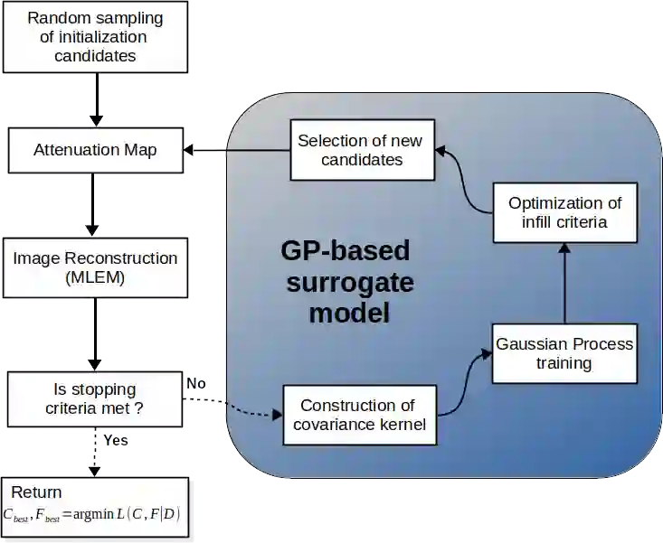 翻译:光衰减和散射是影响SPECT在脑成像应用中的诊断质量的两个主要物理因素。在这项工作中,我们介绍了一种新型的Bayesian优化方法,用于SPECT脑成像中的减速校正(BOAC)。BOC使用先前的模型,对头部几何进行模拟,并利用高性能计算法(HPC)重建减速校正图像,而无需事先从补充的CT扫描中获得解剖信息。BOCAC在SPECT脑成像中显示的是用从数字幻影模拟的噪音和减速的罪理图。用拟议方法获得的图象质量与通过使用适当的图像质量衡量法在不减速的情况下获得的图象质量进行了比较。定量结果显示,BOCC有能力提供与非加速校正的MLEM图像相比,显示更高对比度和较少背景文物的图像。