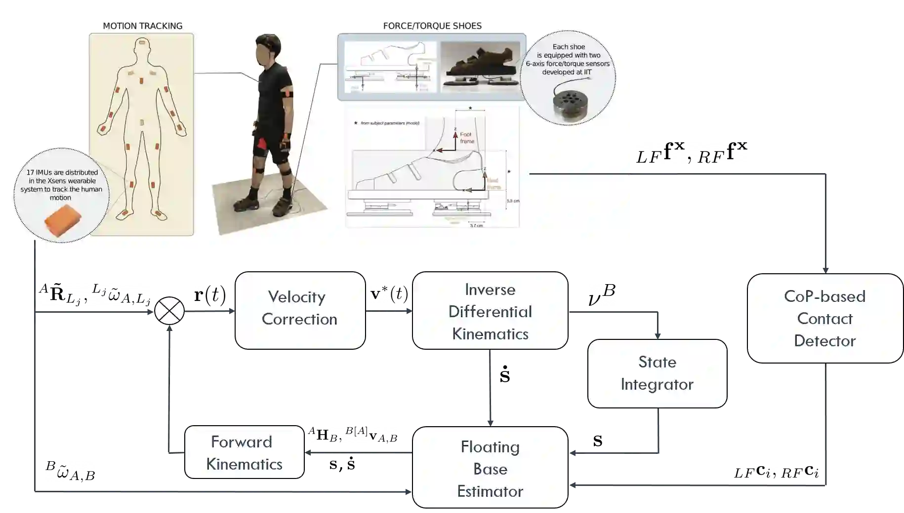 翻译:在没有定位传感器的情况下,通过可磨损的遥感技术对人体进行全体运动估计具有挑战性。本文件有助于利用可磨损分布惯性及强力感测法开发基于模型的整体体运动动力学估计算法。这是通过在级联中扩大现有的动态优化反向营养学(IK)联合国家估计方法,以包括一个基于压力的接触探测器中心和一个用于浮动基数的Lie小组接触辅助的Kalman过滤器。在实验情景中测试了拟议方法,在实验情景中,配备了感知式防护服和鞋子的人进行行走运动。所提议方法的证明是为了实现整个身体运动的可靠重建。