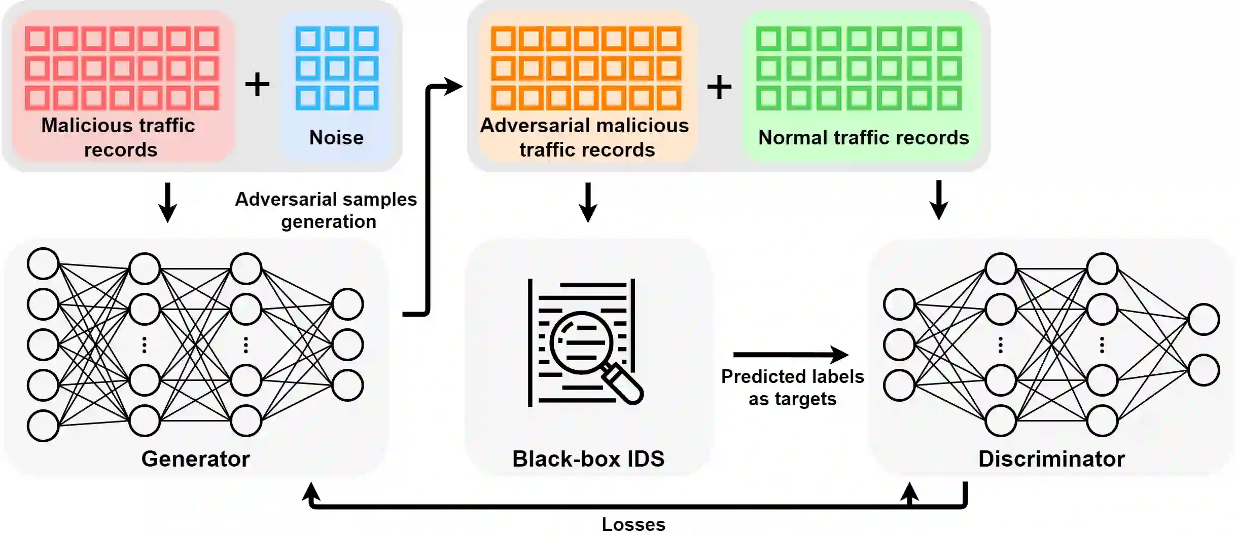 翻译:作为安全方面的一个重要工具,入侵探测系统对恶意交通实施的网络攻击负有防御责任。如今,在机器学习算法的帮助下,入侵探测系统迅速发展;然而,当该系统面临对抗性攻击时,其稳健性令人怀疑;为了改进探测系统,正在研究更多潜在的攻击方法;在本文件中,提议一个称为IDSGAN的基因对抗性网络框架,以生成对抗性恶意交通记录,目的是通过欺骗和逃避探测来攻击入侵探测系统。鉴于攻击者不知道探测系统的内部结构,因此,对攻击系统的对抗性攻击实例对探测系统进行黑盒攻击。IDSGAN利用一台发电机将最初的恶意交通记录转换成对抗性恶意攻击系统。一个歧视者对交通进行分类,并学习黑箱探测系统。更重要的是,为了保证入侵的有效性,攻击性交通中只修改了部分不起作用的功能。根据对NSL-KDD的测试,模型的可行性是通过攻击多种类型的探测系统模型对探测系统进行黑盒式攻击,用不同的攻击特征来核查。