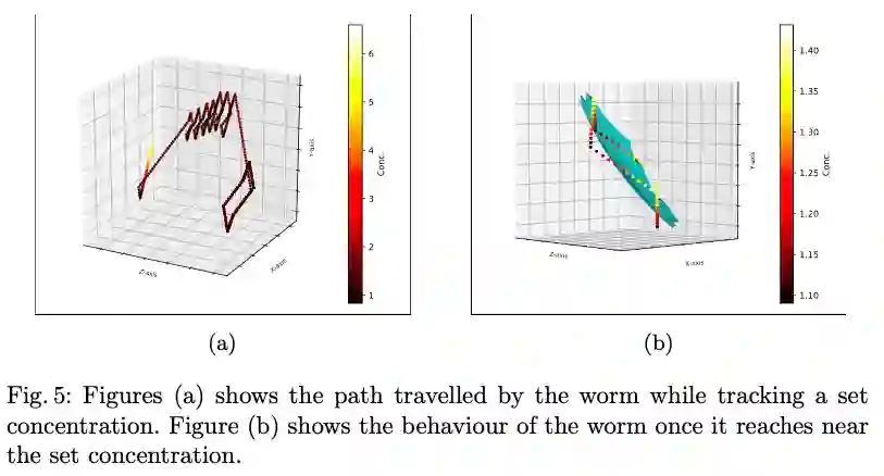 翻译:在这项工作中,我们的目标是设计一个端到端的直射执行,用于3D媒体的轮廓跟踪,该3D媒体受化工税的启发,蠕虫到达了特定集中的区域。对于一个规划介质,已经设计出了高效的轮廓跟踪算法,但新的自由度有不少挑战。在这里,我们设计了一个基于 klinokinesis 的算法 — 蠕虫运动是针对刺激的,但与它不相称。因此,所遵循的路径不是最短的,但我们可以成功地跟踪集集。我们正在使用简单的LIF神经元来实施神经网络,同时考虑将其应用于神经形态计算硬件的可行性。