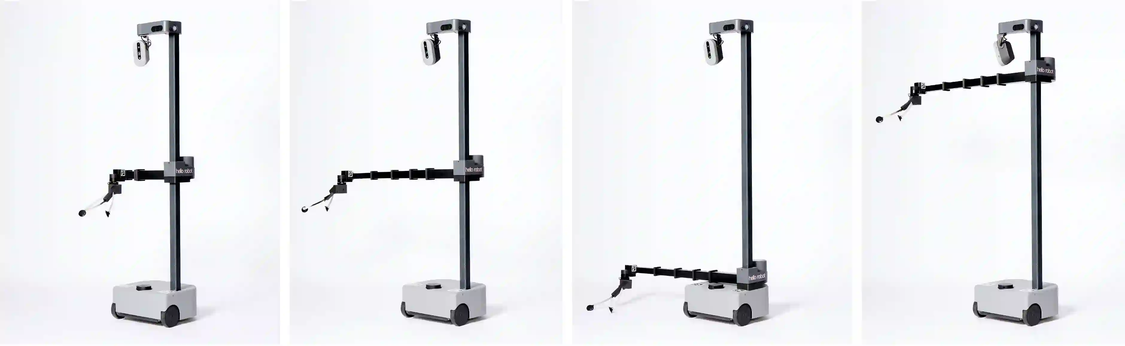 翻译:室内人类环境中的移动操纵器可以作为多用途装置,执行各种任务,但采用这种技术是有限的。降低尺寸、重量和成本可以促进采用,但有限制能力的风险。我们展示了一种新型设计,在减少尺寸、重量和成本的同时,仍然执行各种任务。核心设计包括两轮不同驾驶移动基,电梯和为在手臂末端实现笛卡尔运动而配置的遥测臂。设计扩展包括一个储存工具的自由手腕1度,一个投放和滚动工具的2-DOF模棱两可手腕,以及一个符合要求的牵引器。我们用固定稳定性的数学模型设计,将机器人的大小和重量与其工作空间、有效载荷和应用力联系起来。我们还提供经验支持,根据我们的设计(Hello Roble Inc.),通过远程操作和自主控制一个商业机器人,在现实家中执行任务。