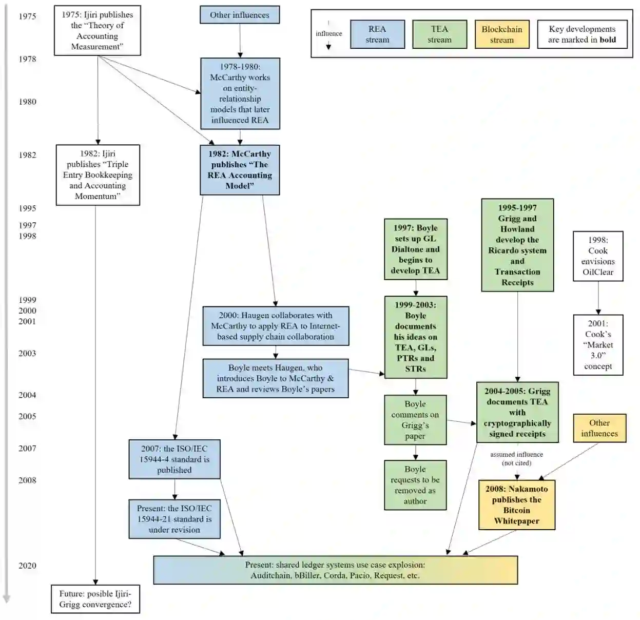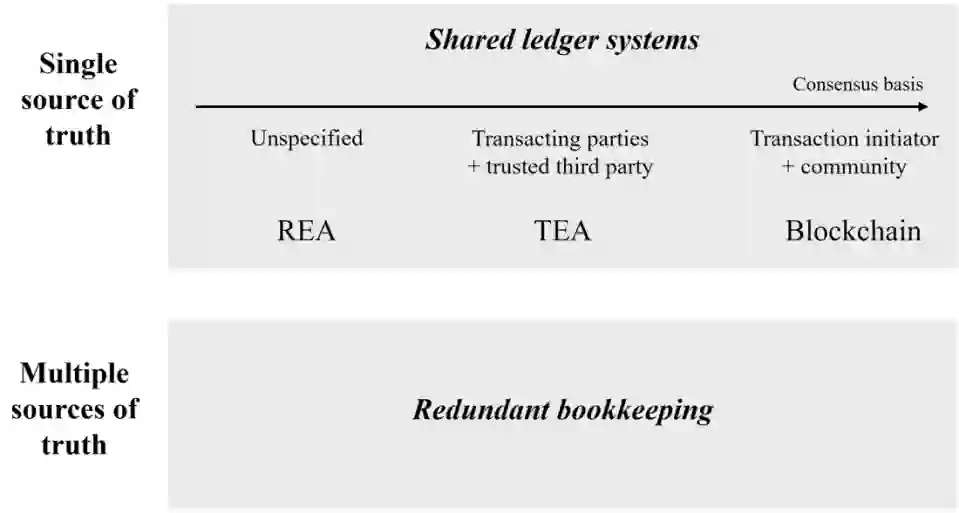 翻译:利用共享分类账系统提供单一真相来源的概念,一再质疑传统的簿记制度; 改进长期存在的复入制度,改进了资源-静态会计框架、三入会计和链锁等解决办法; 然而,迄今为止,共享分类账系统的历史发展仍然模糊不清; 本文对共享分类账系统进行基因分析,特别是追踪REA、TEA和块链的开发; 我们展示了REA框架如何对TEA领域独立研究流产生显著影响,以及这种互动如何追溯到目前共同分类账系统在链条上的化身; 我们这样做时,适当承认每个人对这一发展作出贡献的影响,纠正共同的误解,并绘制出REA、TEA和块链在共享分类系统领域如何重叠的路径。