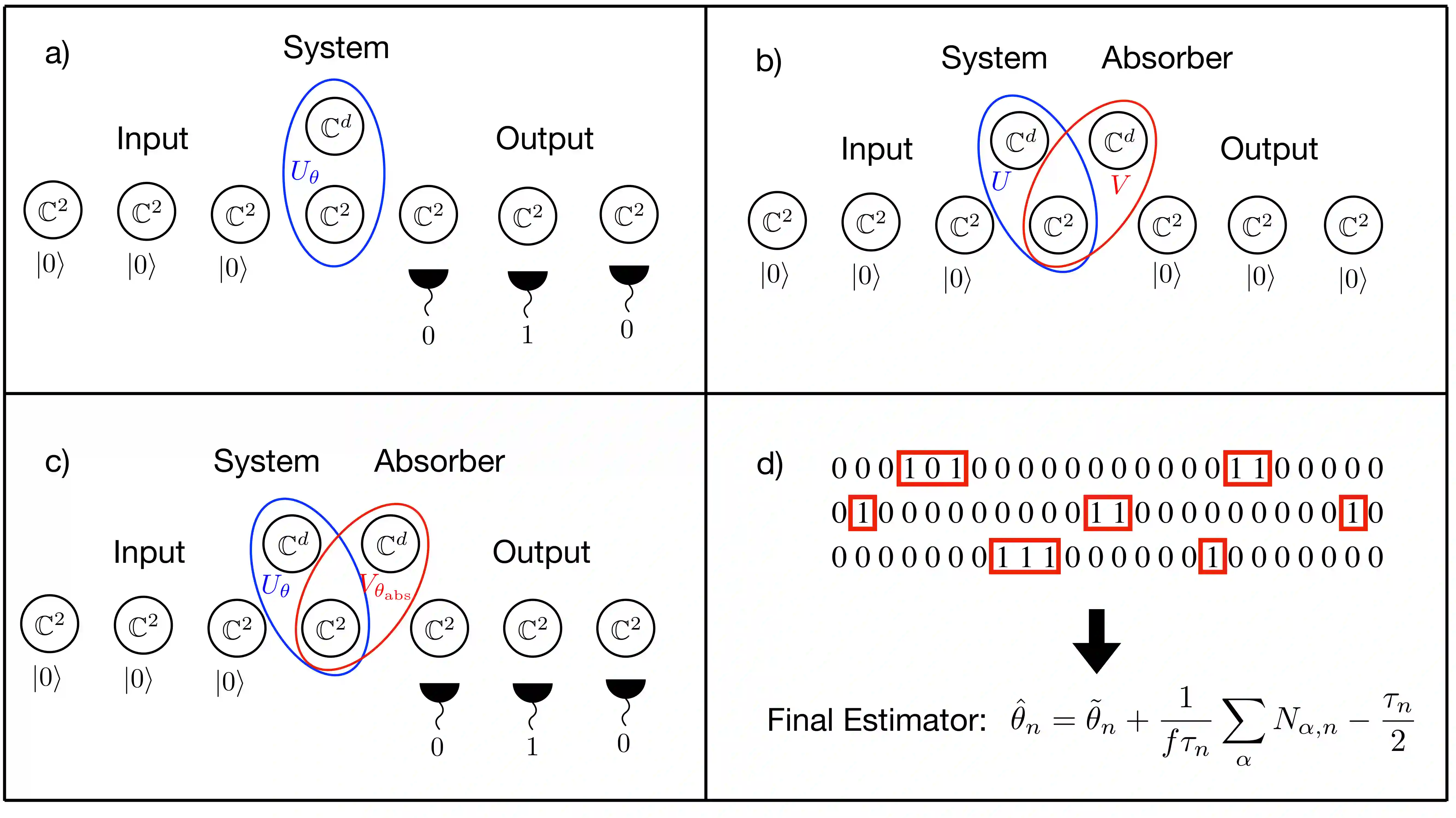 We propose a two step strategy for estimating one-dimensional dynamical parameters of a quantum Markov chain, which involves quantum post-processing the output using a coherent quantum absorber and a "pattern counting'' estimator computed as a simple additive functional of the outcomes trajectory produced by sequential, identical measurements on the output units. We provide strong theoretical and numerical evidence that the estimator achieves the quantum Cram\'{e}-Rao bound in the limit of large output size. Our estimation method is underpinned by an asymptotic theory of translationally invariant modes (TIMs) built as averages of shifted tensor products of output operators, labelled by binary patterns. For large times, the TIMs form a bosonic algebra and the output state approaches a joint coherent state of the TIMs whose amplitude depends linearly on the mismatch between system and absorber parameters. Moreover, in the asymptotic regime the TIMs capture the full quantum Fisher information of the output state. While directly probing the TIMs' quadratures seems impractical, we show that the standard sequential measurement is an effective joint measurement of all the TIMs number operators; indeed, we show that counts of different binary patterns extracted from the measurement trajectory have the expected joint Poisson distribution. Together with the displaced-null methodology of J. Phys. A: Math. Theor. 57 245304 2024 this provides a computationally efficient estimator which only depends on the total number of patterns. This opens the way for similar estimation strategies in continuous-time dynamics, expanding the results of Phys. Rev. X 13, 031012 2023.
