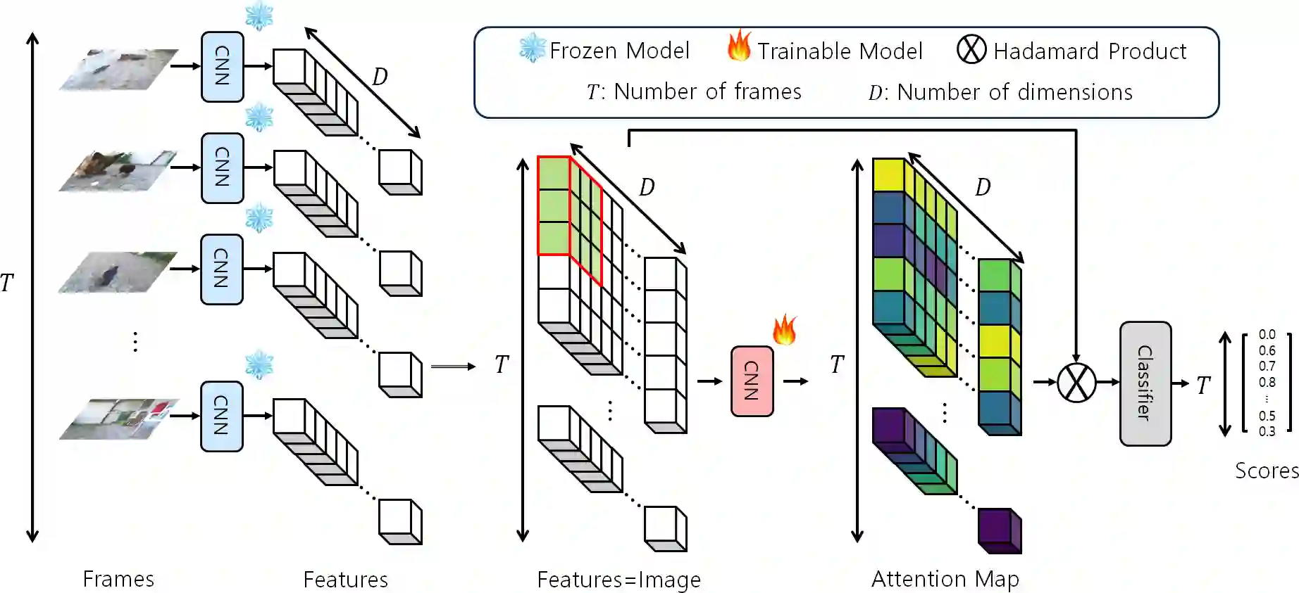 Video summarization aims to generate a concise representation of a video, capturing its essential content and key moments while reducing its overall length. Although several methods employ attention mechanisms to handle long-term dependencies, they often fail to capture the visual significance inherent in frames. To address this limitation, we propose a CNN-based SpatioTemporal Attention (CSTA) method that stacks each feature of frames from a single video to form image-like frame representations and applies 2D CNN to these frame features. Our methodology relies on CNN to comprehend the inter and intra-frame relations and to find crucial attributes in videos by exploiting its ability to learn absolute positions within images. In contrast to previous work compromising efficiency by designing additional modules to focus on spatial importance, CSTA requires minimal computational overhead as it uses CNN as a sliding window. Extensive experiments on two benchmark datasets (SumMe and TVSum) demonstrate that our proposed approach achieves state-of-the-art performance with fewer MACs compared to previous methods. Codes are available at https://github.com/thswodnjs3/CSTA.