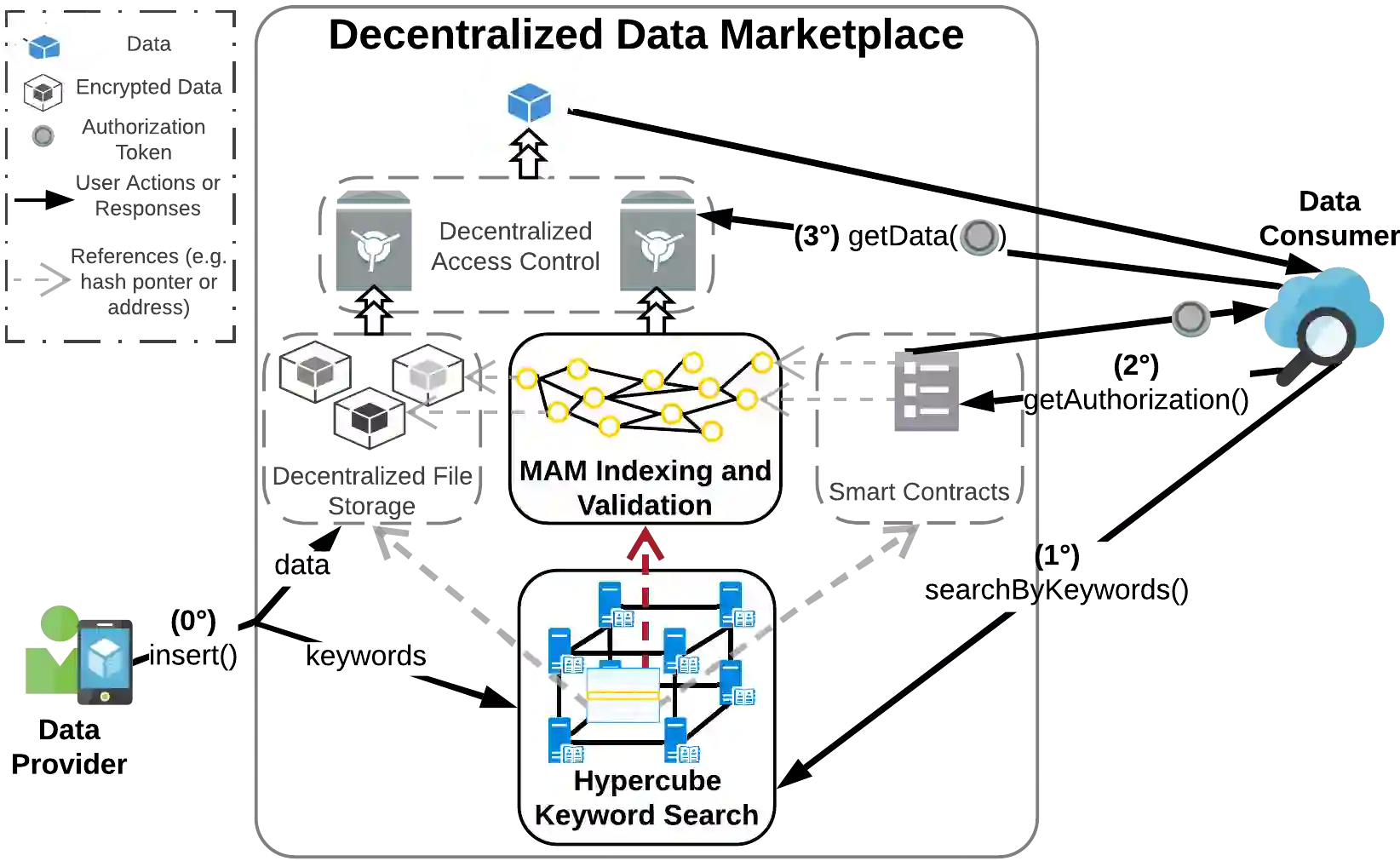 翻译:分散式存储器(DLT)和分散式存储器(DFS)正在越来越多地被用来创建共同、分散和无信任的基础设施,参与者在这种基础设施中互动和协作进行同侪互动;一个突出的使用案例是分散式数据市场,用户是消费者和供应商,同时需要无信任的互动;然而,DLT和DFS中的数据通常没有结构,没有有效的机制查询某类数据用于市场搜索;在本文件中,我们提议使用分散式散货表(DHT)作为DLT上层,一旦获得数据并存储在分类账中,就可以通过基于多个关键词的查询进行搜索,这要归功于DHT提供的外观功能。 DHT网络是一个超立管覆盖结构,为高效处理基于多个关键词的查询而组织起来。我们为分散式数据市场提供了这种解决方案的架构,并在模拟的基础上进行分析,证明拟议方法的可行性。