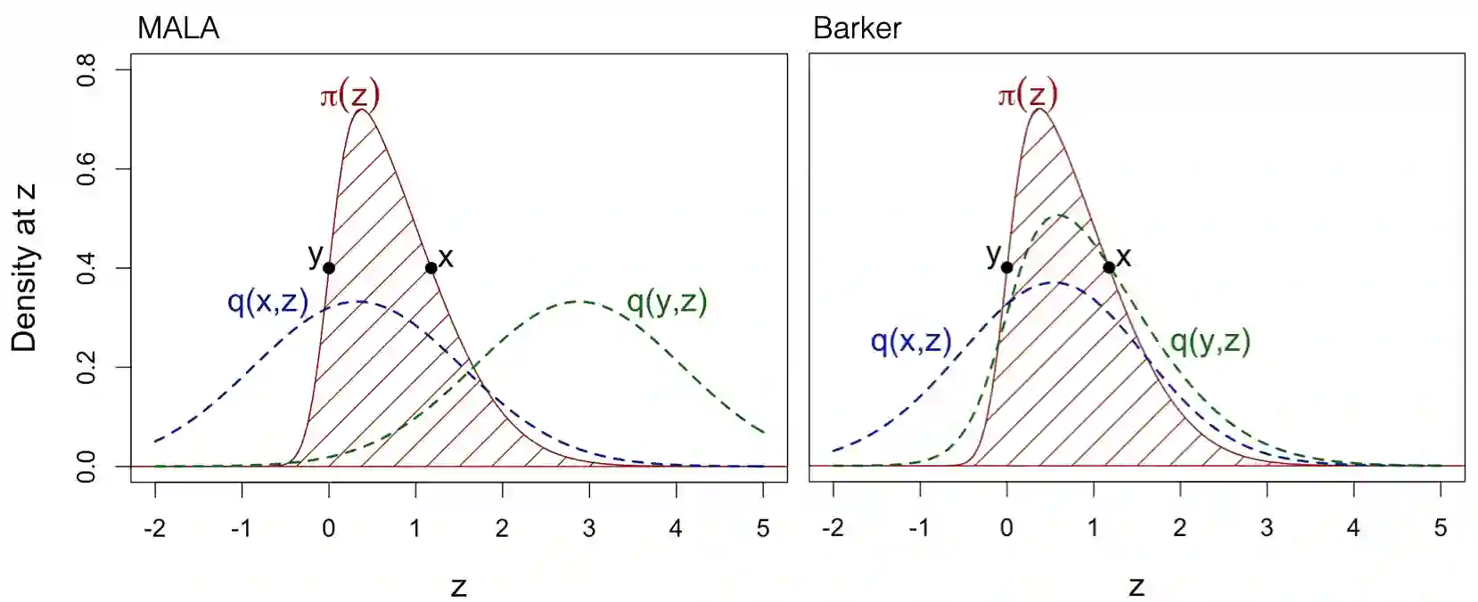 翻译:我们根据“ 巴克动力学” 研究了最近推出的基于梯度的马尔科夫连锁蒙特卡洛方法。 我们从最初的原则中充分推导出这种方法, 将其置于更广泛的连续马可夫跳跃过程的类别中。 然后我们用数字来评估巴克尔方法, 以具有不平衡数据的具有挑战性的、条件不完善的后勤回归示例为基础, 尤其表明算法非常稳健, 在目标分布中极不规则( 在本案中, 高度扭曲 ) 。