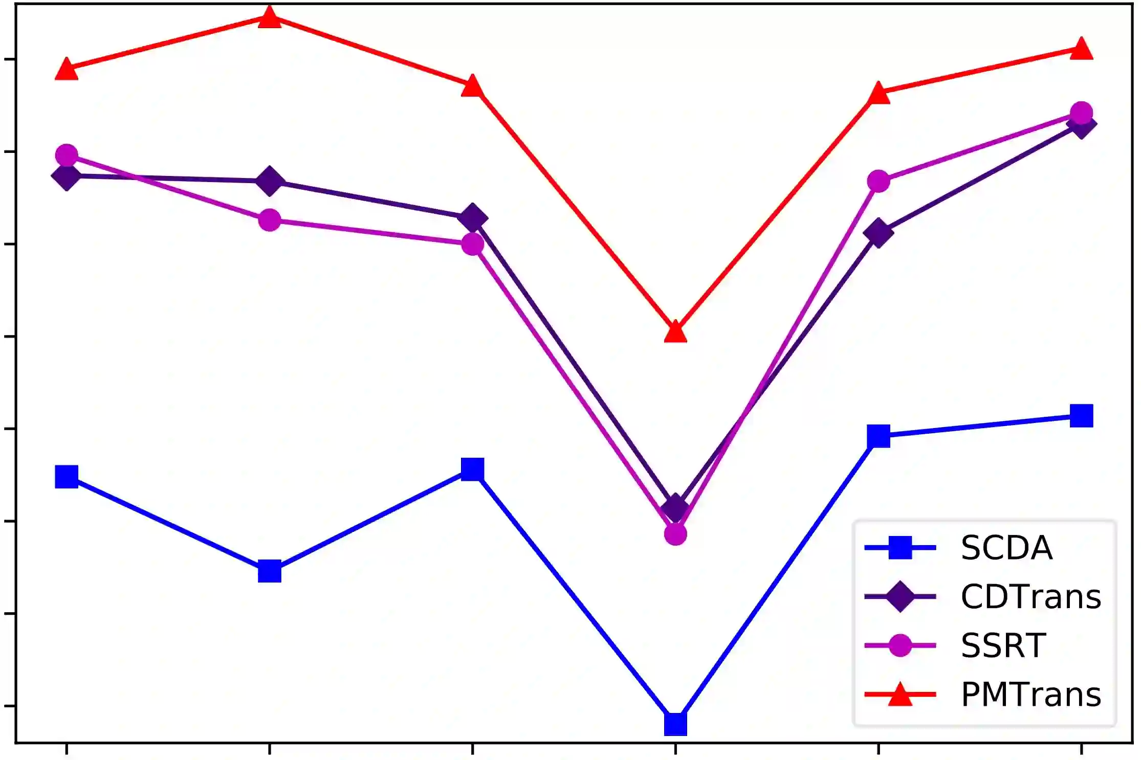 翻译:最近,人们开始利用视觉Transformer(ViT)来解决具有挑战性的无监督领域适应(UDA)任务。这些方法通常在ViT中采用交叉注意力以进行直接的域对齐。然而,由于交叉注意力的性能高度依赖于针对样本的伪标签的质量,因此当域差距变大时,它变得不太有效。我们从博弈论的角度解决了这个问题,提出了一种名为PMTrans的模型,将源域和目标域与中间域联系起来。具体而言,我们提出了一种基于ViT的新型模块PatchMix,通过学习基于博弈论模型从两个领域中采样补丁,有效地建立了中间域,即概率分布。这样,它学习将源域和目标域的补丁混合以最大化交叉熵(CE),同时利用特征空间和标签空间中的两种半监督mixup损失来最小化它们。因此,我们认为通过将UDA过程解释为具有三名玩家(特征提取器、分类器和PatchMix)的最小最大CE博弈来寻找纳什均衡。此外,我们利用ViT的注意力图重新加权每个补丁的标签,以其重要性为标准,从而使其可能获得更具区分性的特征表示。我们在四个基准数据集上进行了大量实验,结果表明,PMTrans在Office-Home、Office-31和DomainNet上分别比基于ViT和基于CNN的SoTA方法高出+3.6%、+1.4%和+17.7%。
