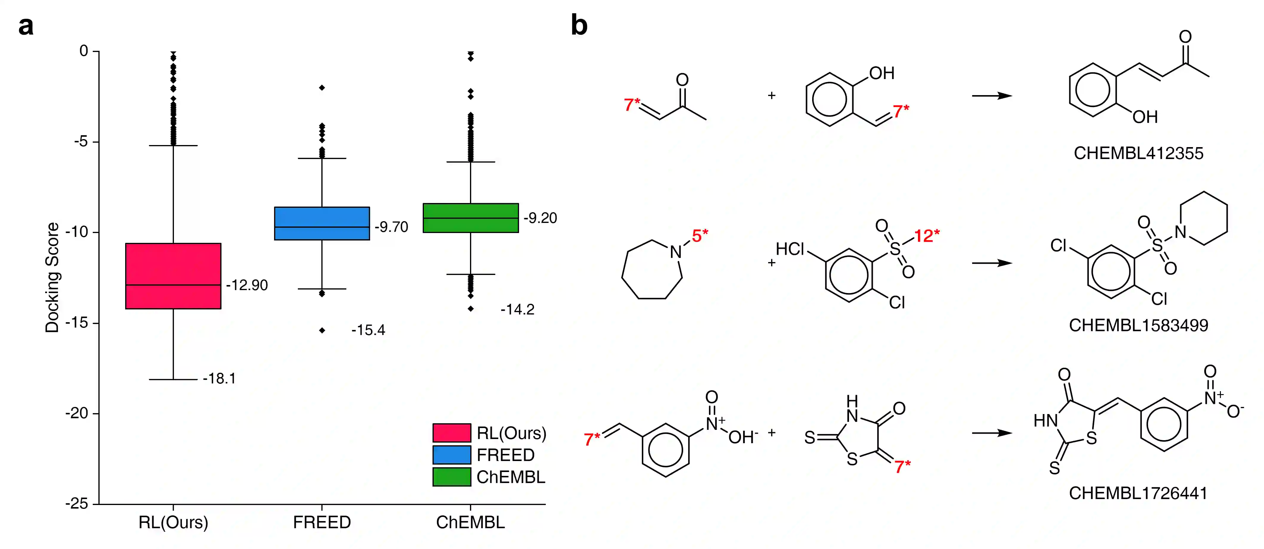 翻译:大多数材料探索的目标是发现比当前已知材料更优越的材料。从根本上讲,这接近于外推,然而对于大多数机器学习模型来说,学习数据的概率分布是其薄弱点。本文开发了一种基于规则的反向分子设计AI 带动的组合化学,该模型不依赖于数据。由于我们的模型潜在地可以生成全部可能的分子结构,这些结构是由分子片段的组合得到的,并因此我们可以发现具有优越性能的未知材料。我们理论上和经验上证明,与概率分布学习模型相比,我们的模型更适合于发现更好的材料。在一个旨在发现七个目标性质的分子中,我们的模型在 10 万次试验中发现了 1,315 个目标分子和 7,629 个五个目标分子,而概率分布学习模型失败了。为了说明实际问题的性能,我们还证明了我们的模型在两个实际应用程序中的工作效果:发现蛋白质对接材料和 HIV 抑制剂。
