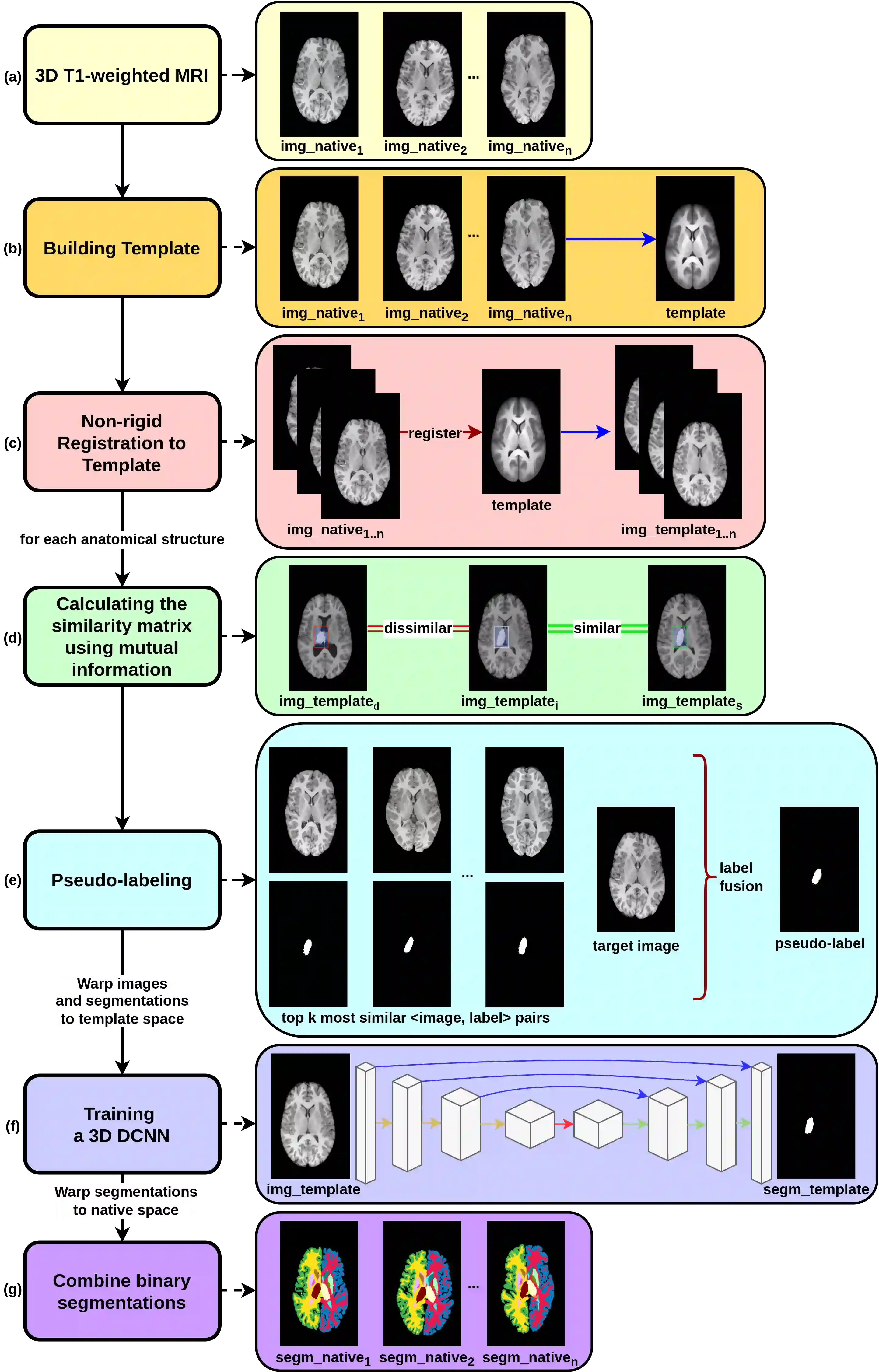 翻译:脑磁共振图像的分解(MRI)对于分析人类大脑和诊断各种脑紊乱至关重要。 耗时和容易出错的人工剖析程序的缺点,旨在通过基于地图集和受监督的机器学习方法来减轻。 以前的方法在计算上十分密集,而后一种方法则缺乏足够多的标签数据。 有了这个动机, 我们提议CORPS, 一个半监督的分解框架, 以基于新地图的假标签方法为基础, 以及3D 大脑D 内核分解的3D 深层直流神经网络(DCNNN) 。 在这项工作中, 我们提议为未贴标签的一组图像制作专家级伪标签, 以基于地图集的精度为基础, 后者缺乏足够数量的标签。 然后, 我们提议为每个解析结构的二维度和三维深度结构的拟议的专家和假标签层面图像组合组合。 双分解法法, 避免多维D 级D 的精度框架的精度伪度伪度伪度伪度伪度伪度, 在二维度 3级的基值 基值 基值 基值 模型 模型 的计算 工具 的精度 的精度 的精度 的精度 的精度 的精度