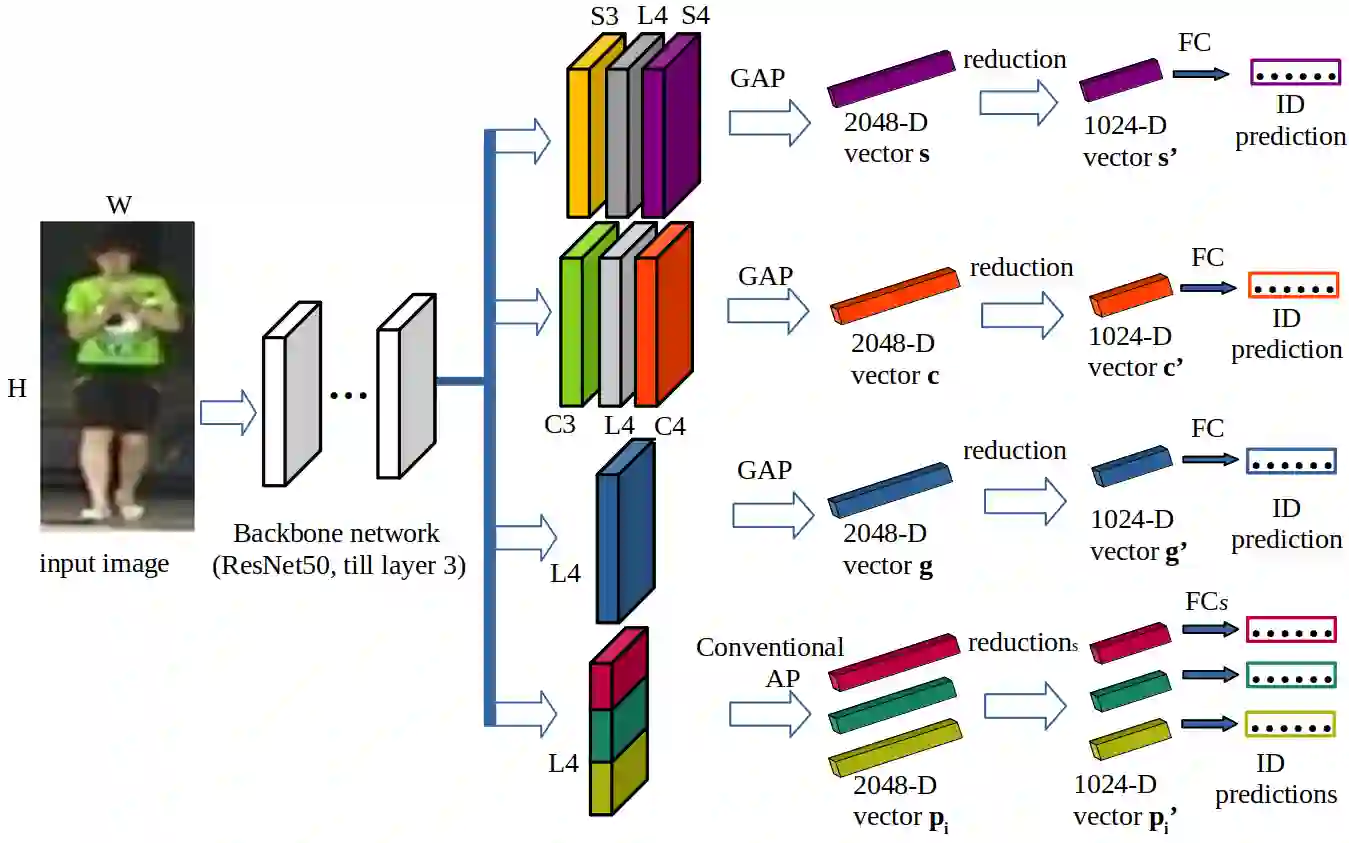 Learning representative, robust and discriminative information from images is essential for effective person re-identification (Re-Id). In this paper, we propose a compound approach for end-to-end discriminative deep feature learning for person Re-Id based on both body and hand images. We carefully design the Local-Aware Global Attention Network (LAGA-Net), a multi-branch deep network architecture consisting of one branch for spatial attention, one branch for channel attention, one branch for global feature representations and another branch for local feature representations. The attention branches focus on the relevant features of the image while suppressing the irrelevant backgrounds. In order to overcome the weakness of the attention mechanisms, equivariant to pixel shuffling, we integrate relative positional encodings into the spatial attention module to capture the spatial positions of pixels. The global branch intends to preserve the global context or structural information. For the the local branch, which intends to capture the fine-grained information, we perform uniform partitioning to generate stripes on the conv-layer horizontally. We retrieve the parts by conducting a soft partition without explicitly partitioning the images or requiring external cues such as pose estimation. A set of ablation study shows that each component contributes to the increased performance of the LAGA-Net. Extensive evaluations on four popular body-based person Re-Id benchmarks and two publicly available hand datasets demonstrate that our proposed method consistently outperforms existing state-of-the-art methods.