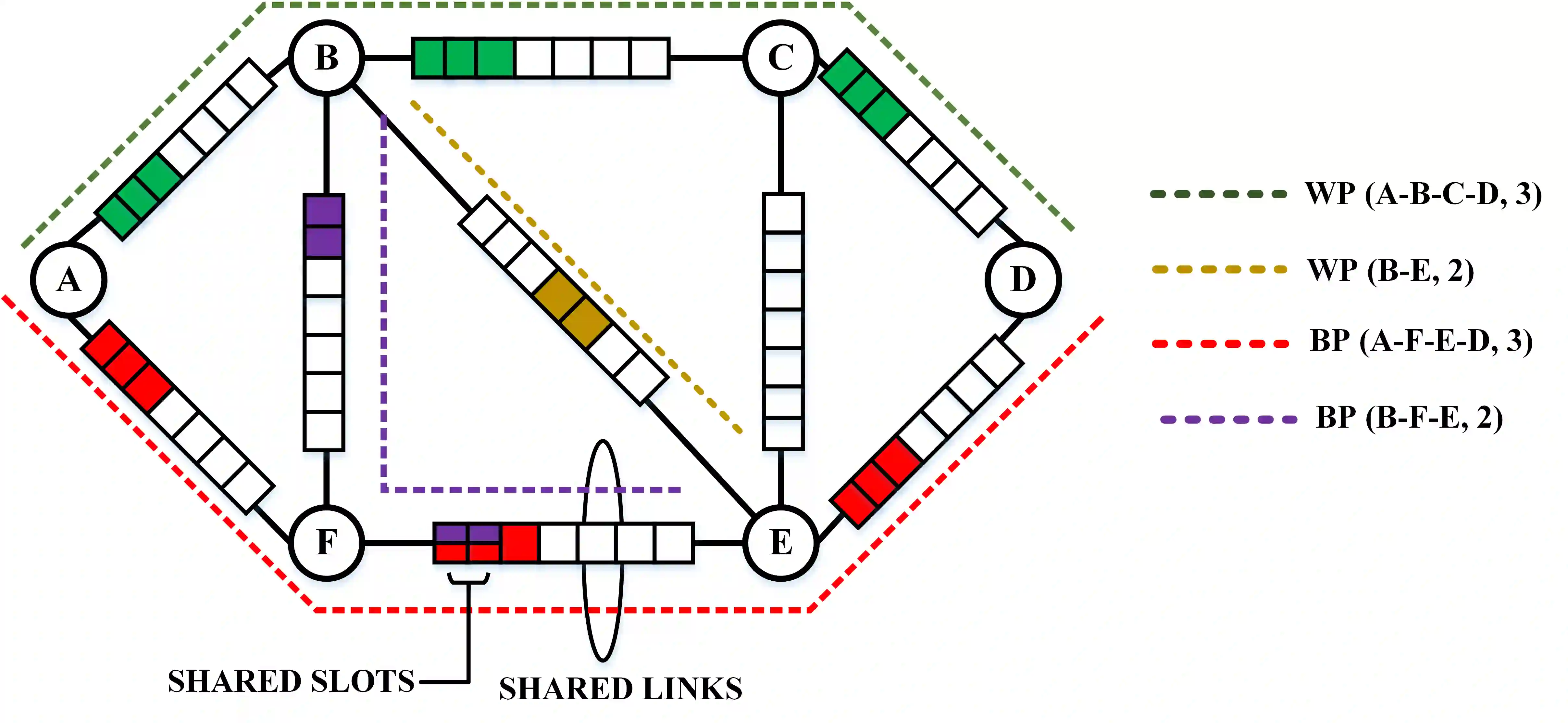 翻译:灵活网格光学网络通过利用各种机制提供光学频道(频谱槽)大小的灵活性,提供高效频谱利用。灵活网格光学网络的研究问题之一是其耐机性。另一方面,由于为寻找现实生活中所见网络规模的最佳配置所需的大量计算时间,p-电网光学网络没有找到实际用途。因此,在实时假设中,我们可以写出超常主义,为新的工作路径提供保护,而不会干扰灵活网格网络中所有其他线路的现有交通。对光路请求的每一个链接或路径的保护可以使用动态循环(D-Cycles)或动态共享资源保护(D-SBRP)进行。然而,保护每个链接或路径可以导致网络资源浪费。