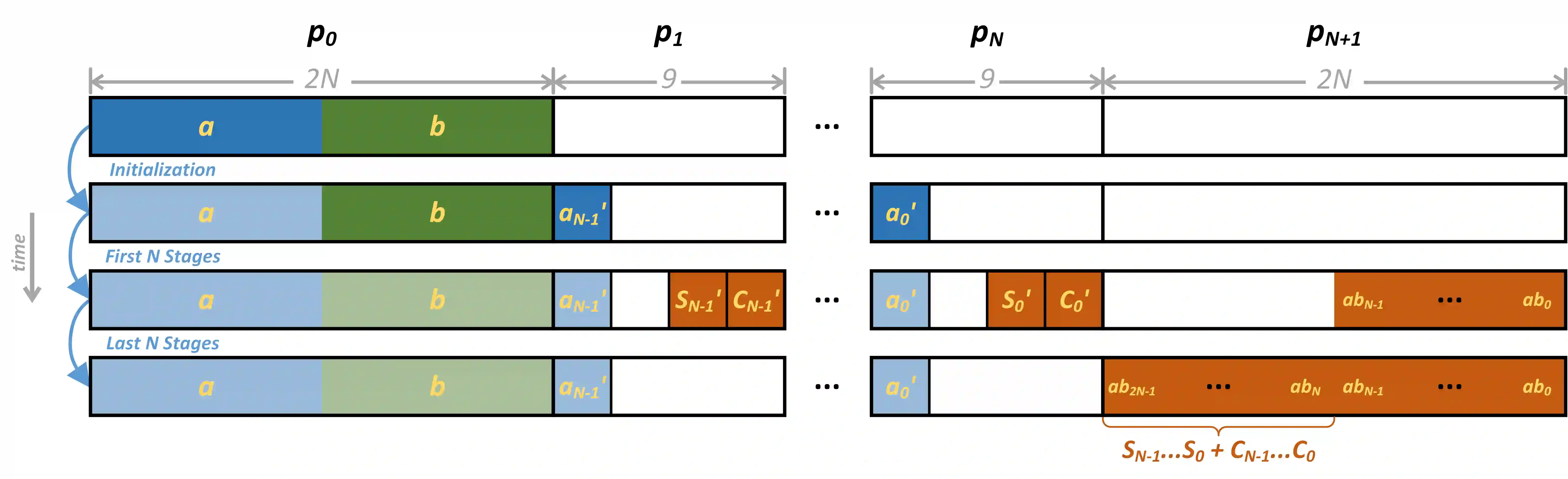 翻译:用于支持存储和逻辑的装置的计算/ 模拟数据传输( PIM ) 。 IMPLY、 MAGIC 和 FELIX 等状态逻辑技术可以在弥漫的跨条形阵列内使用极大的平行阵列中执行逻辑门。 由于影响广泛, 以显性逻辑进行乘法是一个积极的研究领域。 最近, RIME 已经成为了使用中间分隔线使状态单行倍增的最先进的算法, 减少了5. 1%x 之前的状态的静态。 在本文中, 我们首先提出新的基于偏移的计算技术, 用于广播和移动数据。 然后, 我们设计了一个基于随附变换( CSAS) 技术的内模数倍倍倍倍倍倍倍倍增算法。 最后, 我们详细介绍了进一步减少延缩缩的算法的具体逻辑优化。 这些贡献构成MultPIM, 一种将州际矩阵复杂性从四度降为线性。 对于32位数数字来说, MultPIM 将最小化的多式矩阵改进, 以微缩缩缩缩缩缩缩图区域 。