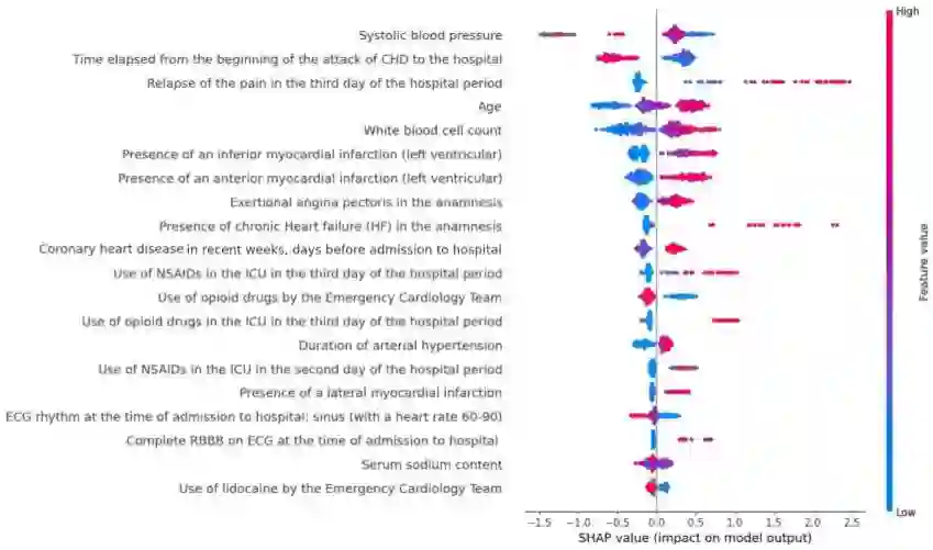 Myocardial Infarction is a main cause of mortality globally, and accurate risk prediction is crucial for improving patient outcomes. Machine Learning techniques have shown promise in identifying high-risk patients and predicting outcomes. However, patient data often contain vast amounts of information and missing values, posing challenges for feature selection and imputation methods. In this article, we investigate the impact of the data preprocessing task and compare three ensembles boosted tree methods to predict the risk of mortality in patients with myocardial infarction. Further, we use the Tree Shapley Additive Explanations method to identify relationships among all the features for the performed predictions, leveraging the entirety of the available data in the analysis. Notably, our approach achieved a superior performance when compared to other existing machine learning approaches, with an F1-score of 91,2% and an accuracy of 91,8% for LightGBM without data preprocessing.