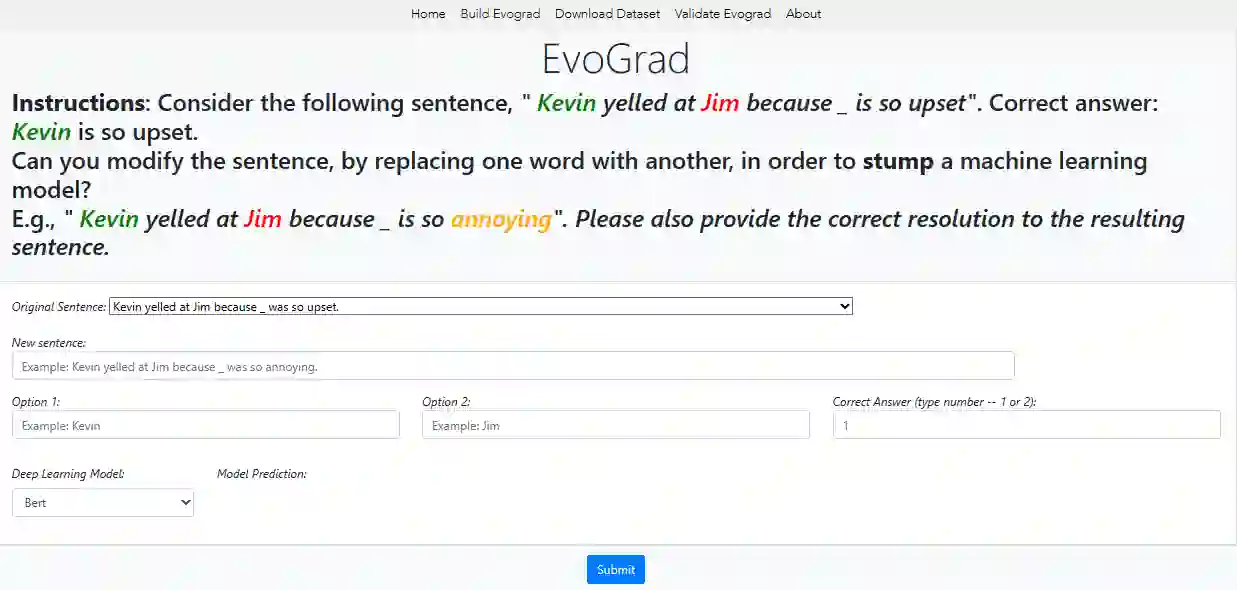 While Large Language Models (LLMs) excel at the Winograd Schema Challenge (WSC), a coreference resolution task testing common-sense reasoning through pronoun disambiguation, they struggle with instances that feature minor alterations or rewording. To address this, we introduce EvoGrad, an open-source platform that harnesses a human-in-the-loop approach to create a dynamic dataset tailored to such altered WSC instances. Leveraging ChatGPT's capabilities, we expand our task instances from 182 to 3,691, setting a new benchmark for diverse common-sense reasoning datasets. Additionally, we introduce the error depth metric, assessing model stability in dynamic tasks. Our results emphasize the challenge posed by EvoGrad: Even the best performing LLM, GPT-3.5, achieves an accuracy of 65.0% with an average error depth of 7.2, a stark contrast to human performance of 92. 8% accuracy without perturbation errors. This highlights ongoing model limitations and the value of dynamic datasets in uncovering them.
