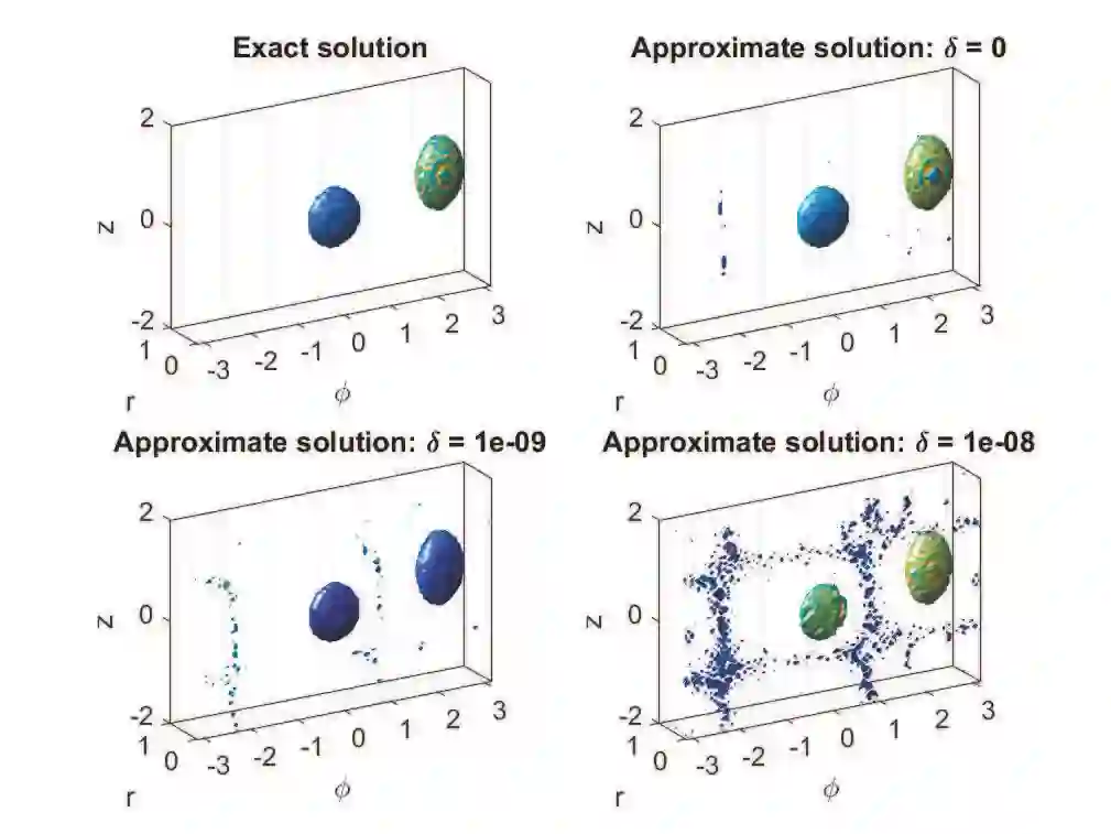 翻译:提出了在圆柱形区域对不相容的介质进行声学探测的三维二次反向问题稳定解析的新算法。 问题的数据是,在圆柱形层声学不均匀区域以外测量的波场的复杂振幅。 使用 Fourier 变形和 Fourier 序列, 反向问题被归结为解决第一种单维Fredholm 集成方程式, 以及随后计算出不均匀区域波场的复杂振幅, 然后寻找该区域所需的声速场。 算法使个人计算机平均性能的反向问题能够在数秒内为足够精细的三维电网解决。 对解决不同频率模型反向问题的拟议算法的准确性进行了数字研究, 并调查了在数据扰动方面算法的稳定性问题。