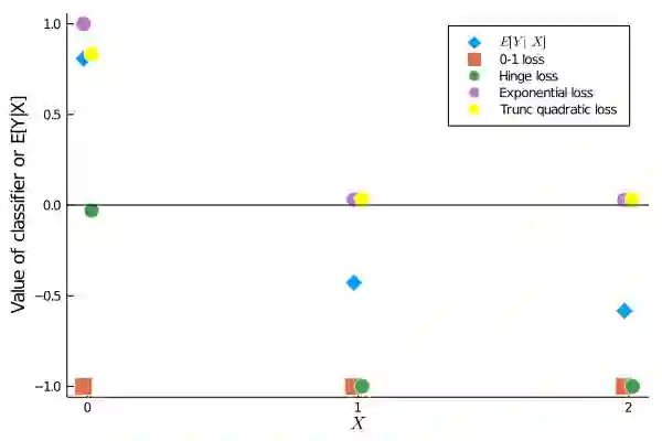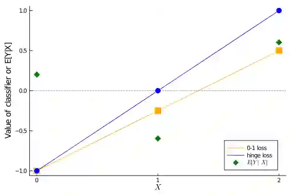 翻译:AdaBoost、支持矢量机和深神经网络等现代机器的分类学习方法,利用代用损失技术绕过计算复杂性,最大限度地减少实证分类风险的计算复杂性。这些技术对于因果政策学习问题也有帮助,因为个人化处理规则的估算可以被描绘成一个加权(成本敏感的)分类问题。在张(2004年)和巴特利特等人(2006年)中研究的代用损失方法的一致性,关键地依赖于正确规格的假设,这意味着指定的成套分级器足够丰富,足以包含一个第一高分级器。然而,当一组分级器受可解释性或公平性制约时,这种假设就不那么可信,使基于代用损失算法的算法的可适用性在这种次好的情况下是未知的。本文研究的是,在一组受限制的分类师中,代用的代用损失程序的一致性,而不假定正确的规格。我们表明,在限制分级器的预测仅限下,损失(即, $_1美元-美元-支持性的额外矢量机器)只能作为唯一一种代代代用损失的代用形式,因此,保证最低性损失假设性成本性标准的计算,如果以维持了标准不变性标准不变性标准,那么,则限制标准损失的定值不变性损失的定为我们定值的固定性标准,则以不变性标准,则以不变性损失的定值不变性标准。