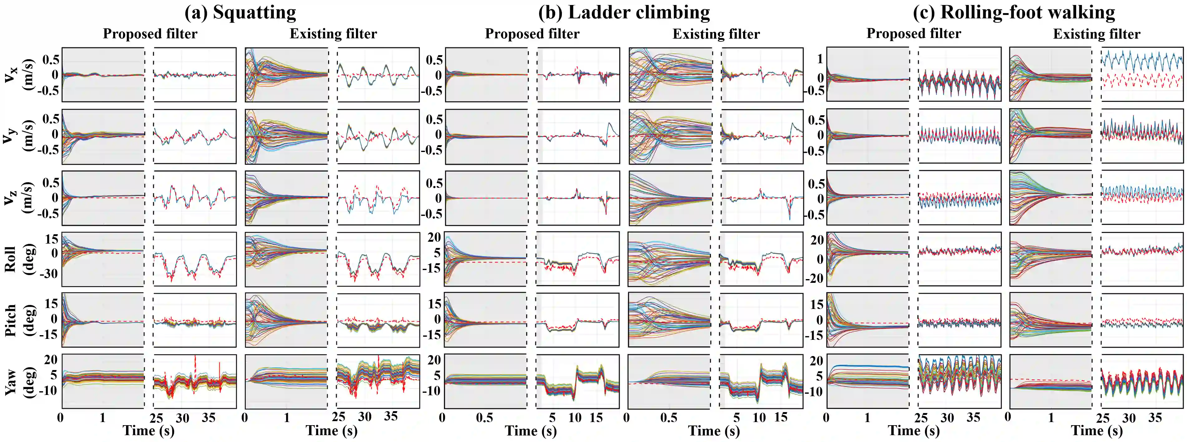 翻译:人类运动对健康监测和控制辅助机器人至关重要,但许多人类运动变量无法直接或精确地用磨损传感器来测量。 近年来,变异型的延长卡尔曼过滤器(InEKF)在非线性国家估计中显示出巨大的潜力,但其对人类的应用带来了新的挑战,包括不完善地放置磨损传感器和不准确的测量模型。为了应对这些挑战,本文件建议扩大InEKF设计,该设计考虑到作为州一部分的中继器惯性传感器在中继器上的不匹配,并保护该组在工艺模型上的近距离属性。 个人化的低深度前向运动模型(InEKF)已经建成,并被用作扩大的InEKF的测量模型。 新的InEKF设计的观察性分析提出了新的挑战,包括不完善地放置可磨损传感器和不准确性测量模型和梯子移动运动。 实验结果证实拟议的InEKF在作为州的一部分对工艺的状态的优异性表现。 在估计与人类前向方向相关的模型的所有初步误差方面,尽管已经实现了重大的精确性和方向。