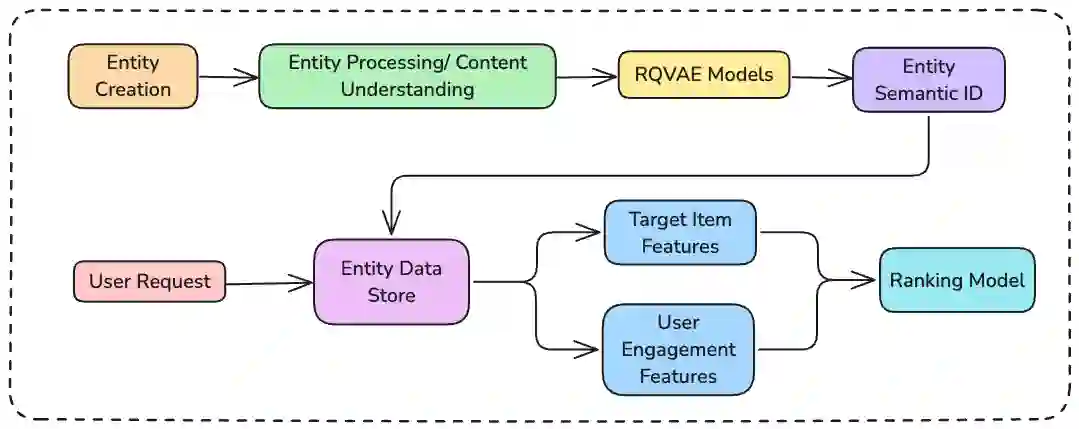 翻译:在线内容的指数级增长对工业推荐系统中基于ID的模型提出了重大挑战,包括极高的基数性与动态增长的ID空间、高度倾斜的参与度分布,以及由ID自然生命周期(如新ID产生与旧ID淘汰)导致的预测不稳定性。为解决这些问题,许多系统依赖随机哈希处理ID空间并控制相应模型参数(即嵌入表)。然而,该方法因多个ID共享相同嵌入而引入数据污染,导致模型性能下降与嵌入表示不稳定。本文系统分析这些挑战,并提出语义ID前缀n元语法——一种创新的令牌参数化技术,能显著提升原始语义ID的性能。该技术通过基于内容嵌入对项目进行层次化聚类(而非随机分配)来创建语义层面的有效碰撞。大量实验表明,语义ID前缀n元语法不仅能解决嵌入不稳定性问题,还可显著改善尾部ID建模效果、减少过拟合现象并缓解表示偏移。我们进一步阐明了该技术在基于注意力的用户历史上下文模型中的优势,展现出显著的性能提升。文中同时报告了将语义ID集成至Meta广告排序生产系统的实践经验,该部署在实际运行中取得了显著的性能增益与预测稳定性提升。