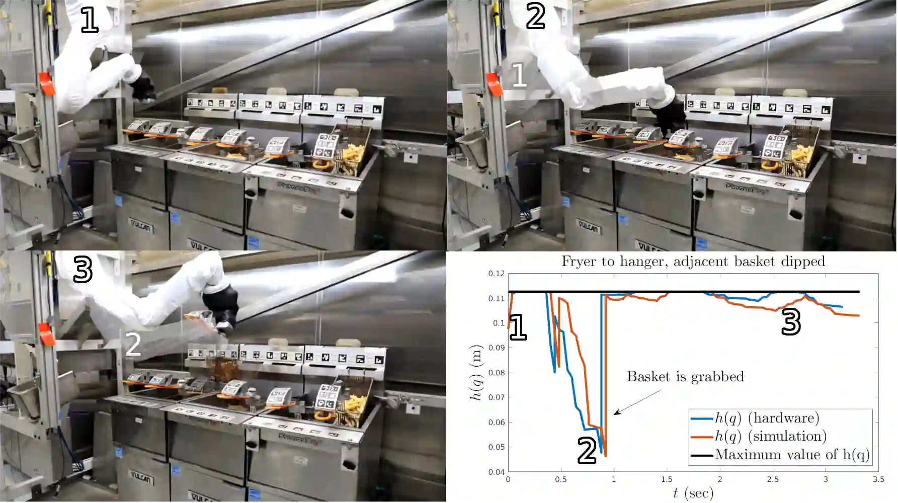 翻译:最近的进展使得食品准备在高通量环境中实现了自动化,然而,成功部署这些机器人需要规划和实施快速、稳健和最终不发生碰撞的行为。在这项工作中,我们展示了利用控制障碍功能(CBFs)在非常详细和动态的碰撞环境中改变机器人操纵者以前产生的轨迹的新框架。这种方法动态地重新规划了在不断变化的环境中以前证实的行为,并且以高效的计算方式这样做。此外,这种方法为由此产生的轨迹提供了严格的安全保障,考虑到操纵者的真正基本动态。这种方法在现实世界的烹饪环境中对一个全面的机器人操纵者进行了广泛验证,并大大改善了计算时间和对再规划的稳健性。