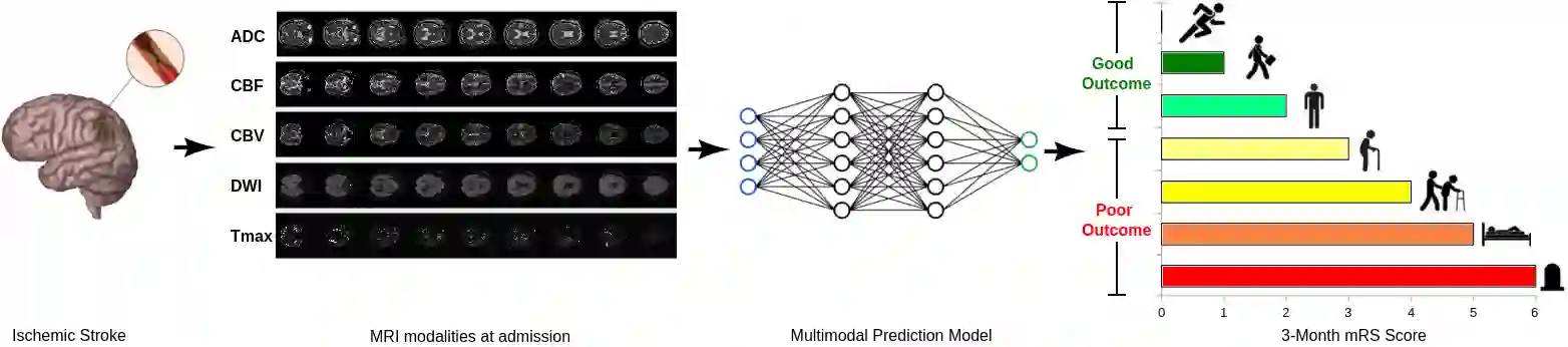 翻译:病人结果预测对于缺血性中风的管理至关重要。本文提出了一种用于中风预测的新型机器学习模型,利用多模态磁共振成像数据。所提出的模型由两个串行级别的自动编码器(AEs)组成,其中不同的级别1的AEs用于从不同的MRI模态学习单模态特征,级别2的AE用于将单模态特征组合成压缩的多模态特征。给定患者的多模态特征序列然后由LSTM网络用于预测结果得分。证明了所提出的AE2-LSTM模型是处理MRI数据的多模态和容积性特性的有效方法。实验结果表明,所提出的AE2-LSTM模型优于现有的最先进模型,达到最高AUC=0.71和最低MAE=0.34。
