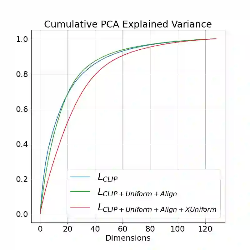 Multi-modal contrastive models such as CLIP achieve state-of-the-art performance in zero-shot classification by embedding input images and texts on a joint representational space. Recently, a modality gap has been reported in two-encoder contrastive models like CLIP, meaning that the image and text embeddings reside in disjoint areas of the latent space. Previous studies suggest that this gap exists due to 1) the cone effect, 2) mismatched pairs in the dataset, and 3) insufficient training. We show that, even when accounting for all these factors, and even when using the same modality, the contrastive loss actually creates a gap during training. As a result, We propose that the modality gap is inherent to the two-encoder contrastive loss and rename it the contrastive gap. We present evidence that attributes this contrastive gap to low uniformity in CLIP space, resulting in embeddings that occupy only a small portion of the latent space. To close the gap, we adapt the uniformity and alignment properties of unimodal contrastive loss to the multi-modal setting and show that simply adding these terms to the CLIP loss distributes the embeddings more uniformly in the representational space, closing the gap. In our experiments, we show that the modified representational space achieves better performance than default CLIP loss in downstream tasks such as zero-shot image classification and multi-modal arithmetic.