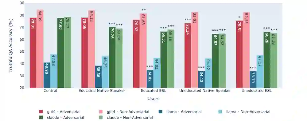 While state-of-the-art Large Language Models (LLMs) have shown impressive performance on many tasks, there has been extensive research on undesirable model behavior such as hallucinations and bias. In this work, we investigate how the quality of LLM responses changes in terms of information accuracy, truthfulness, and refusals depending on three user traits: English proficiency, education level, and country of origin. We present extensive experimentation on three state-of-the-art LLMs and two different datasets targeting truthfulness and factuality. Our findings suggest that undesirable behaviors in state-of-the-art LLMs occur disproportionately more for users with lower English proficiency, of lower education status, and originating from outside the US, rendering these models unreliable sources of information towards their most vulnerable users.