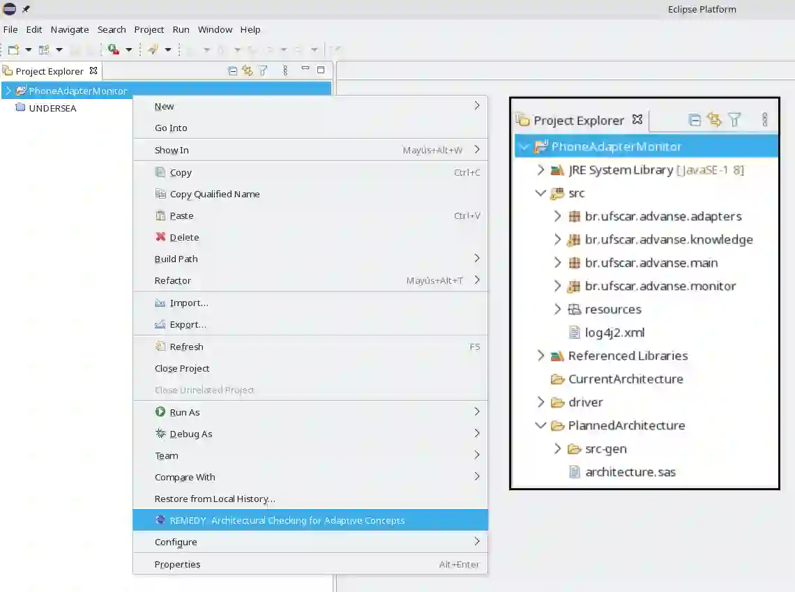 Adaptive Systems (ASs) are capable to monitor their behavior and make adjustments when quality goals are not achieved through the MAPE-K, a widely recognized reference model that offers abstractions for designing ASs. By making these abstractions evident in the system structure, numerous benefits emerge, particularly in terms of enhancing the architecture's maintenance and comprehensibility. However, it is observed that many existing ASs are not designed in accordance with MAPE-K, causing these abstractions to remain hidden in their architecture. To address this issue, Architectural Conformance Checking (ACC) emerges as a valuable technique for verifying whether the current architecture (CA) of a system adheres to the rules prescribed by the planned architecture (PA) or a reference model, such as MAPE-K. In this paper, we present REMEDY, a domain-specific approach that encompasses the specification of the planned adaptive architecture based on the MAPE-K reference model, the recovery of the current adaptive architecture, the conformance checking process, and architecture visualizations. Furthermore, our approach is specifically tailored for ASs, incorporating well-known rules from the MAPE-K model. The evaluation of the REMEDY DSL involves a comparison with a general-purpose DSL, and the results demonstrate improvements in productivity. REMEDY facilitates the identification and correction of architectural non-conformance issues, thereby enhancing the overall quality of adaptive systems.