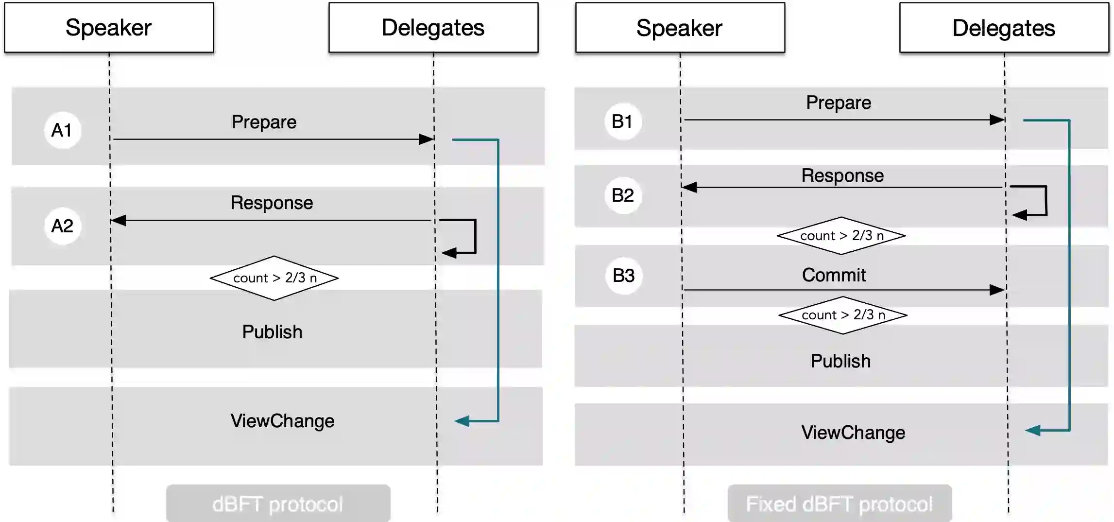NEO is one of the top public chains worldwide. We focus on its backbone consensus protocol, called delegated Byzantine Fault Tolerance (dBFT). The dBFT protocol has been adopted by a variety of blockchain systems such as ONT. dBFT claims to guarantee the security when no more than $f = \lfloor \frac{n}{3} \rfloor$ nodes are Byzantine, where $n$ is the total number of consensus participants. However, we identify attacks to break the claimed security. In this paper, we show our results by providing a security analysis on its dBFT protocol. First, we evaluate NEO's source code and formally present the procedures of dBFT via the state machine replication (SMR) model. Next, we provide a theoretical analysis with two example attacks. These attacks break the security of dBFT with no more than $f$ nodes. Then, we provide recommendations on how to fix the system against the identified attacks. The suggested fixes have been accepted by the NEO official team. Finally, we further discuss the reasons causing such issues, the relationship with current permissioned blockchain systems, and the scope of potential influence.