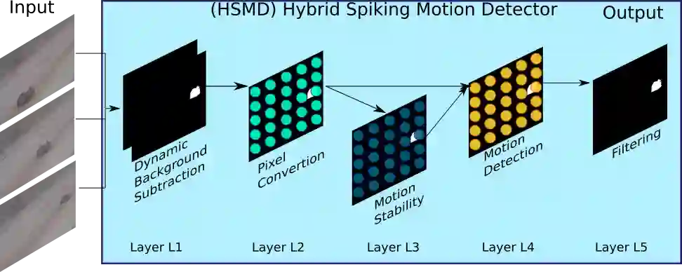 翻译:Vertebrate 视网膜在处理诸如探测移动物体等无关紧要的视觉任务方面效率很高,但现代计算机却面临复杂挑战。在脊椎动物中,对物体运动的检测是由名为“物体运动敏感凝聚细胞”的专用视网膜细胞(OMS-GC)进行的。OMS-GC进程连续视觉信号并生成由视觉科特克斯(FPGAs)处理后处理的峰值模式。我们以前的混合敏感运动探测器(HSMD)算法是第一个用定制的三层 Spiking神经网络(SNNN)来强化背景减量算法的混合算法,该算法生成了OMS-GC的快速神经网络反应。在这项工作中,我们展示了一个名为“神经运动混合运动”的神经运动感光电感动感应器,因此,NEUHSMDM(CD2012) 和2014年变换码目标检测(CDnet 2014年) 基准数据设置了ODMIS 的直径阵列,因此,在二十八号的内直径CMLMER 和CDMER 的SBSER 进行测试中,因此,在这种直径2020和CD-CRER 。