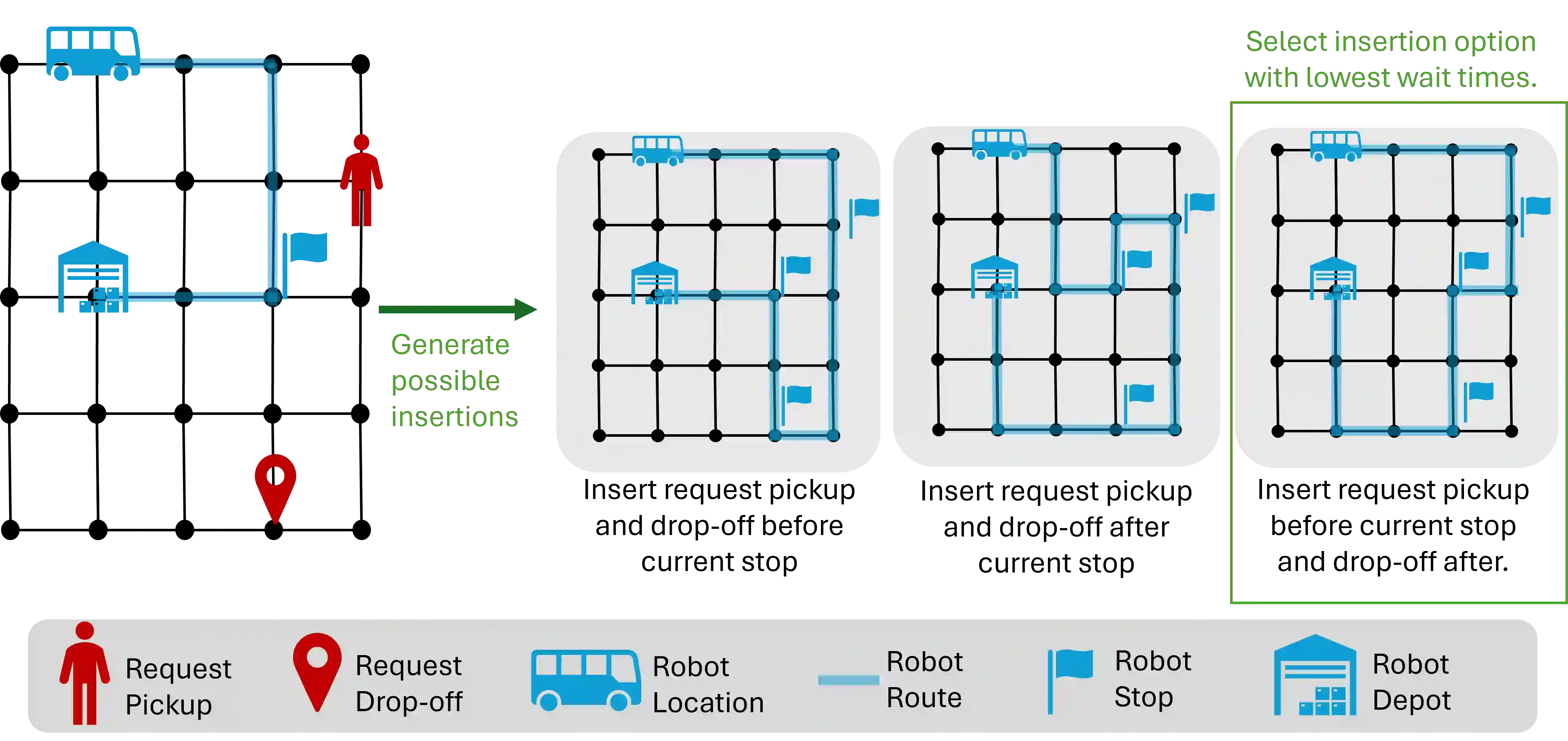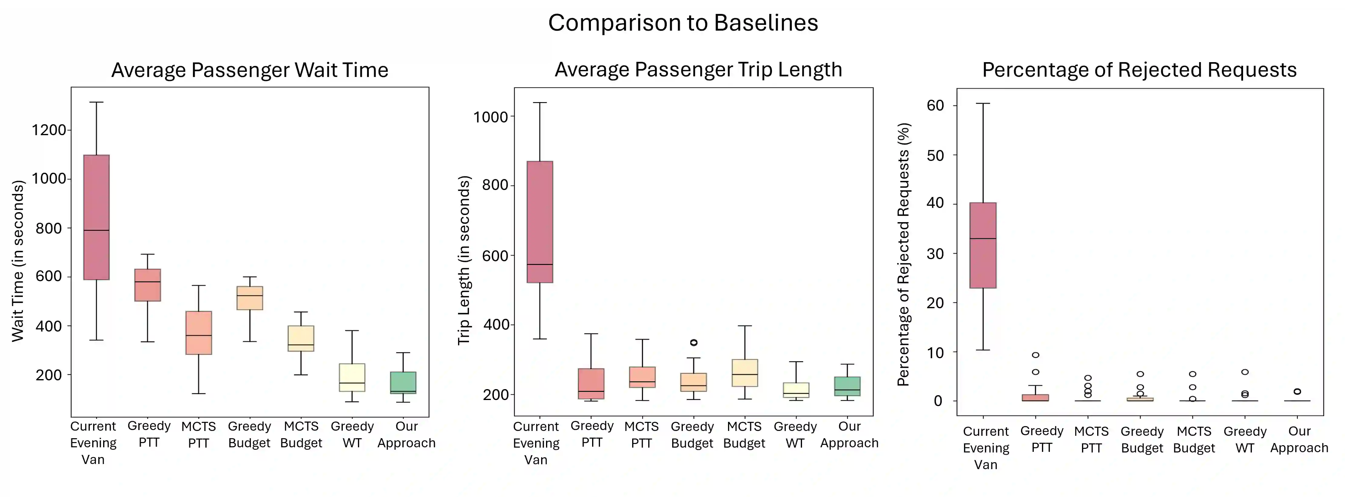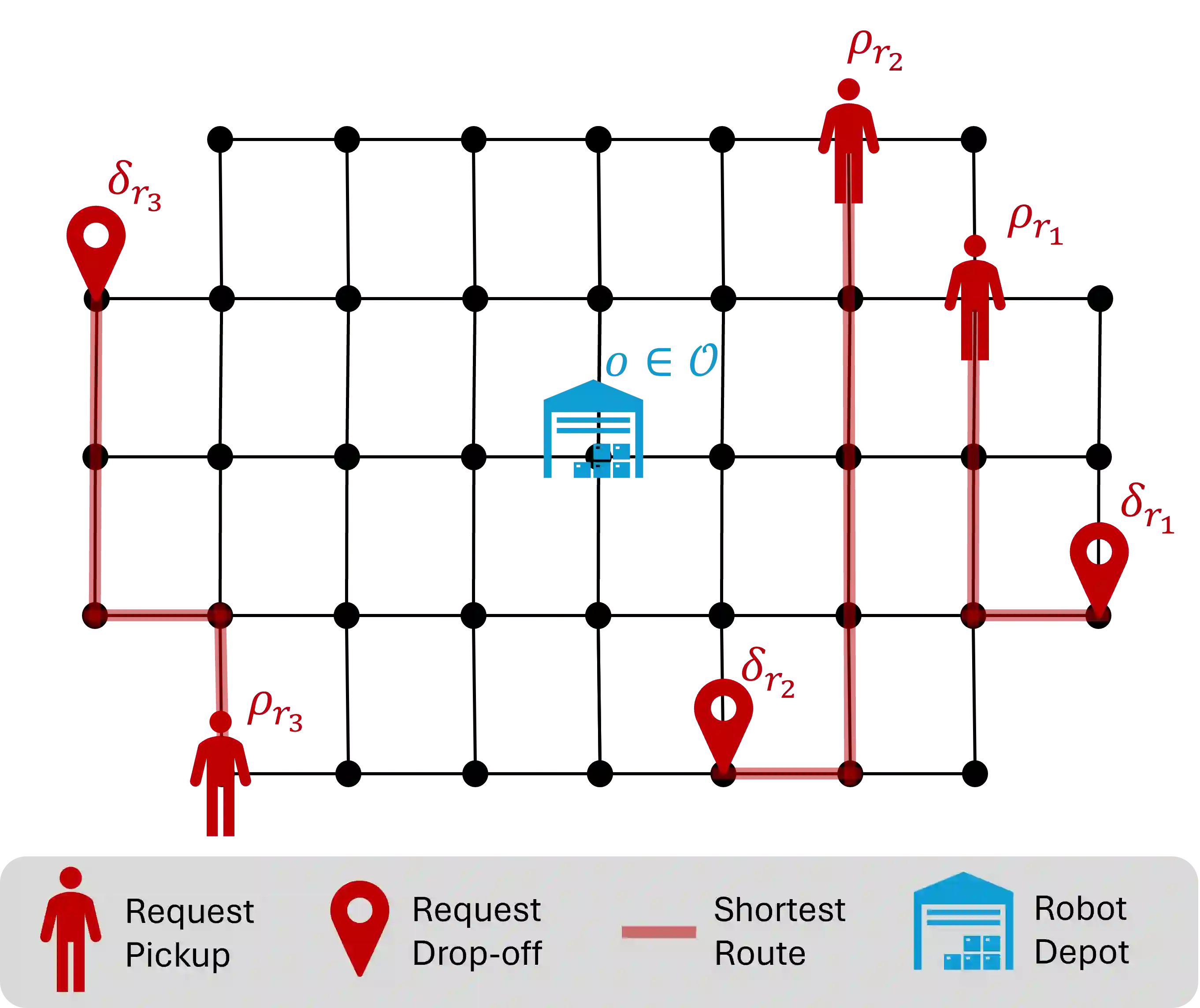 翻译:本文研究多机器人系统,其中包含一支多容量自主机器人车队,需在固定最长等待时间内服务空间分布的取送请求。请求可预先调度,亦可实时进入系统。在此场景中,路由策略的稳定性定义为策略成本随时间保持一致有界。现有研究大多通过离线求解以理论维持稳定性,或考虑动态到达请求但牺牲稳定性理论保证。本文旨在弥合这一差距,提出一种基于主动滚动的创新路由框架,既能适应实时需求,又可证明维持学习路由策略的稳定性。通过设计车队规模算法获得充分大的车队规模,从构造上确保稳定性,从而为方法提供可证明的稳定性保证。为验证理论结果,我们以哈佛大学晚间班车系统的真实乘车请求进行案例研究,并使用当前部署的较小车队规模评估框架性能。在此较小配置下,与当前部署路由算法、贪婪启发式算法及基于蒙特卡洛树搜索的算法进行对比。实证结果表明:采用理论结果所得的充分大队列规模时,本框架能保持稳定性;在当前部署的较小车队规模下,本方法比最优基线多服务6%的请求,同时将乘客中位等待时间降低33%。