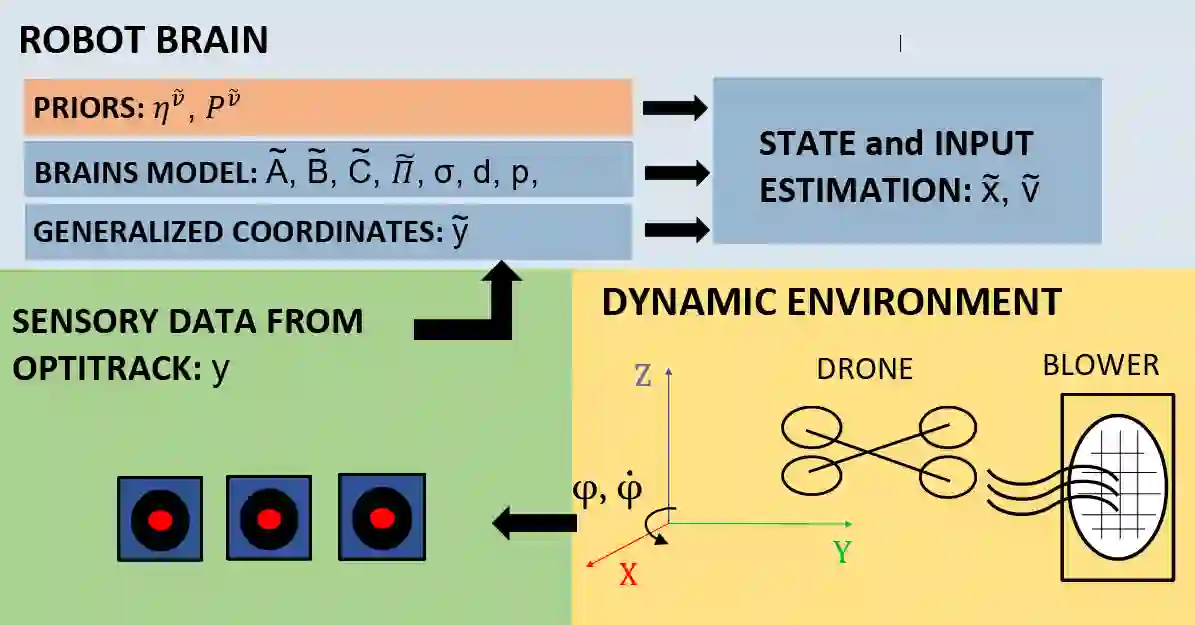 The free energy principle from neuroscience provides a brain-inspired perception scheme through a data-driven model learning algorithm called Dynamic Expectation Maximization (DEM). This paper aims at introducing an experimental design to provide the first experimental confirmation of the usefulness of DEM as a state and input estimator for real robots. Through a series of quadcopter flight experiments under unmodelled wind dynamics, we prove that DEM can leverage the information from colored noise for accurate state and input estimation through the use of generalized coordinates. We demonstrate the superior performance of DEM for state estimation under colored noise with respect to other benchmarks like State Augmentation, SMIKF and Kalman Filtering through its minimal estimation error. We demonstrate the similarities in the performance of DEM and Unknown Input Observer (UIO) for input estimation. The paper concludes by showing the influence of prior beliefs in shaping the accuracy-complexity trade-off during DEM's estimation.