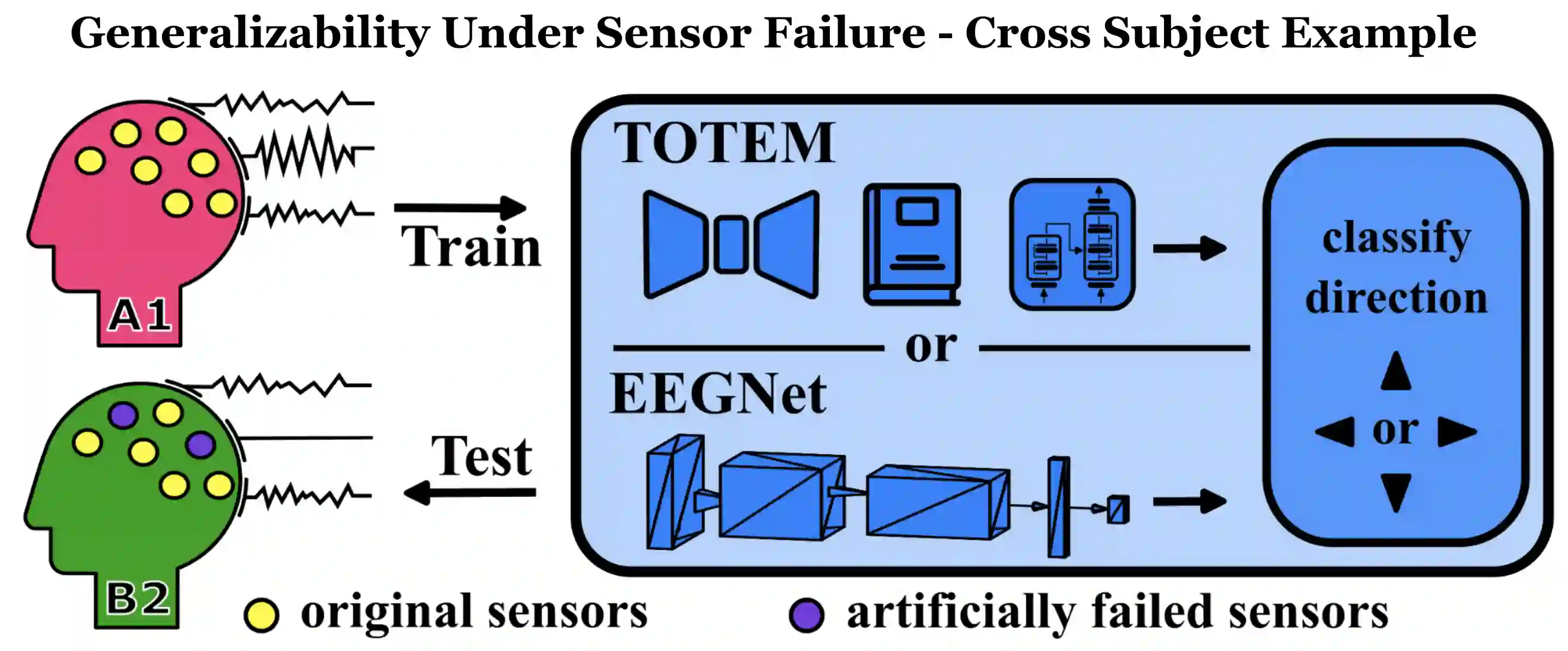 A major goal in neuroscience is to discover neural data representations that generalize. This goal is challenged by variability along recording sessions (e.g. environment), subjects (e.g. varying neural structures), and sensors (e.g. sensor noise), among others. Recent work has begun to address generalization across sessions and subjects, but few study robustness to sensor failure which is highly prevalent in neuroscience experiments. In order to address these generalizability dimensions we first collect our own electroencephalography dataset with numerous sessions, subjects, and sensors, then study two time series models: EEGNet (Lawhern et al., 2018) and TOTEM (Talukder et al., 2024). EEGNet is a widely used convolutional neural network, while TOTEM is a discrete time series tokenizer and transformer model. We find that TOTEM outperforms or matches EEGNet across all generalizability cases. Finally through analysis of TOTEM's latent codebook we observe that tokenization enables generalization.