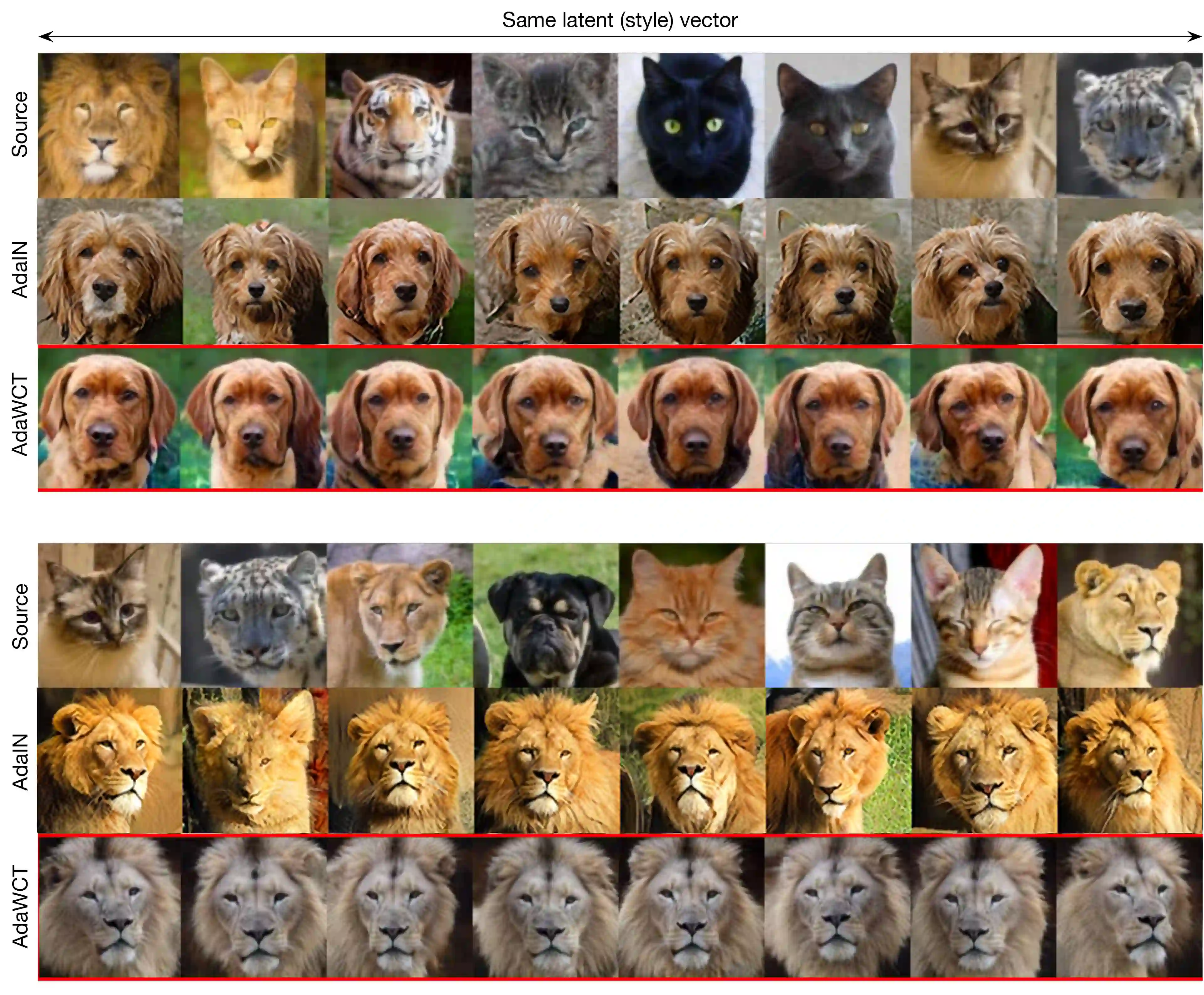 翻译:适应性实例正常化(AdaIN)已经成为风格注入的标准方法:通过规模和轮班操作重新规范特征,发现在风格传输、图像生成和图像到图像翻译中广泛使用。 在这项工作中,我们展示了AdaIN的概括化,AdaIN依赖于我们称为AdaWCT的白化和彩色转换(WCT),我们申请在大型GANs中采用风格注入。我们通过StarGANv2结构的实验显示,这种概括化尽管在概念上简单,但导致生成图像质量的显著改善。