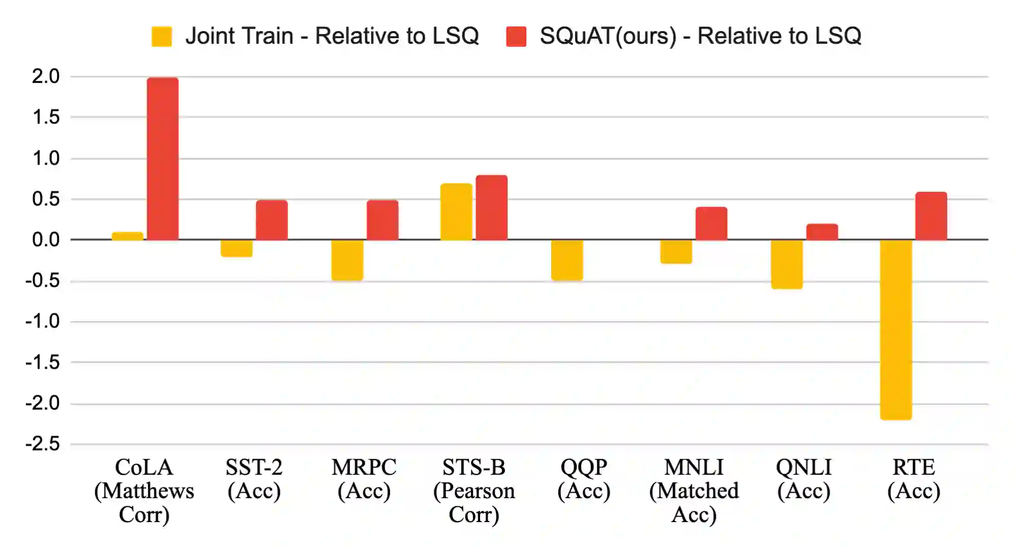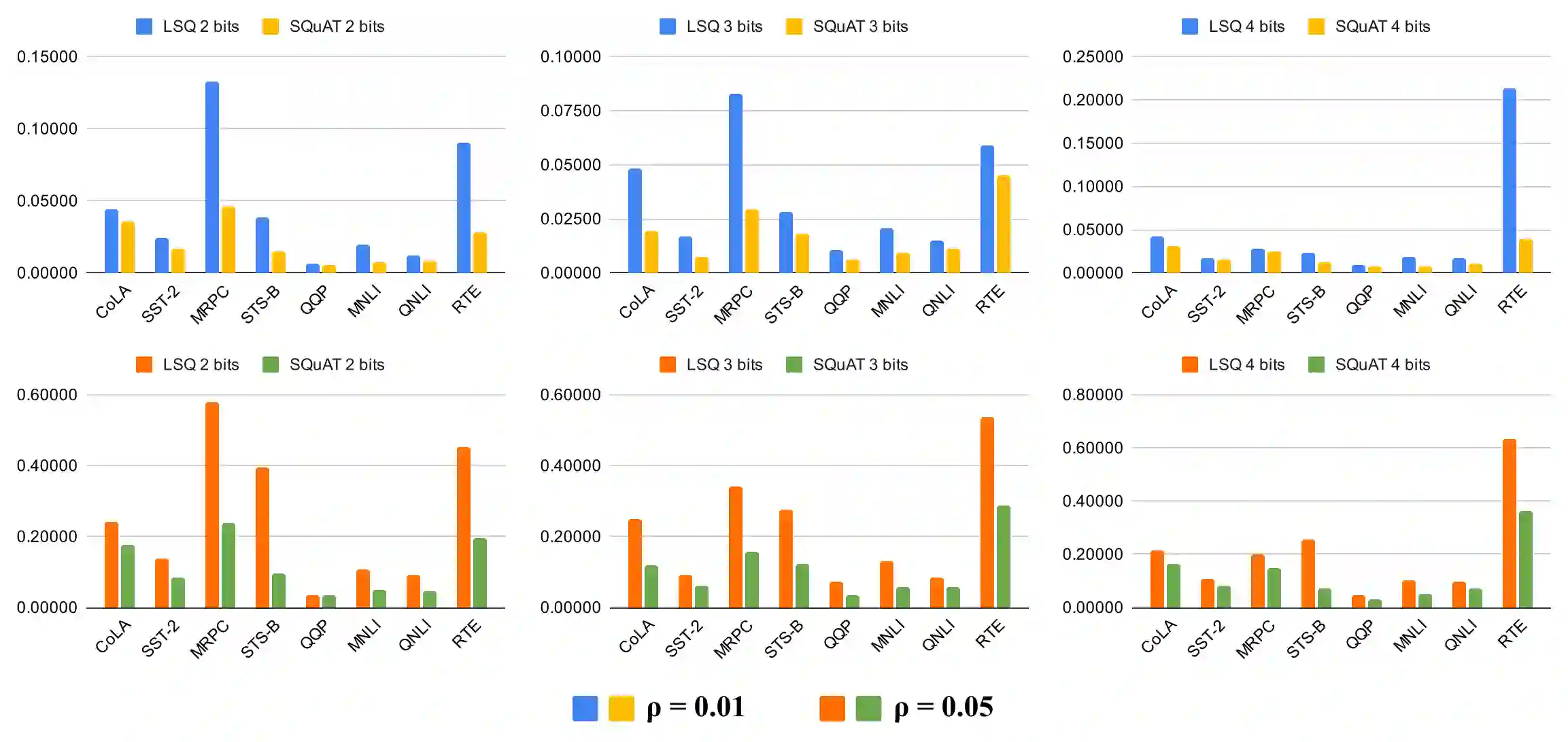翻译:量化是减少记忆足迹、推推延率和深层学习模型动力消耗的有效方法。然而,现有量化方法与全精度模型相比,精确度下降,因为粗粗梯度估算通过非差别量化层引入错误。超分模型(如变压器)损失地貌中存在尖锐的地方微粒,往往会加重低位(2、4比特)环境中的这种性能处罚。在这项工作中,我们建议精确度和定量认知模型培训(SQAAT),这将鼓励该模型在进行四分法培训时与微米相融合。我们提议的方法替代了精确度目标与跨级目标之间的培训。这有可能让模型学习最合适的参数更新程度,以达到接近缩放微型模型的趋同量。广泛的实验表明,我们的方法在2、3和4位模型下,GLUE基准下的精度和微量度(SQUE基准)会鼓励该模型在进行微量度培训时与微量度模型相趋近,有时甚至可以建议我们最精确的精确度测量方法。