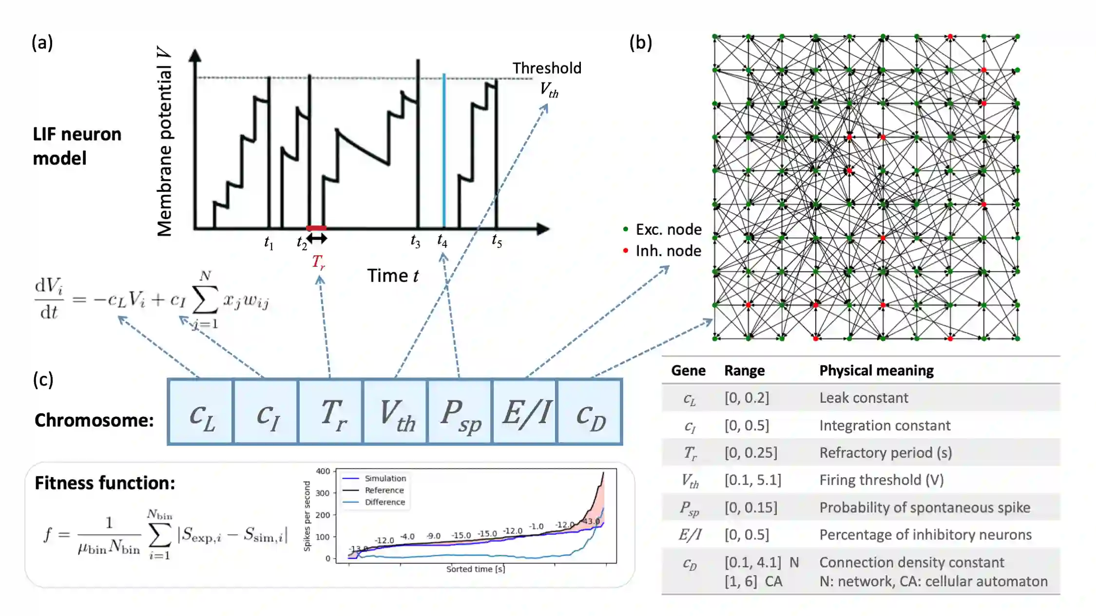 翻译:受神经启发的模型和系统在非常规计算中有着巨大的应用潜力。 生物神经元的机制往往在模拟或物理系统中模拟或模仿,试图利用大脑的一些计算能力。 然而,神经系统中的生物机制复杂,难以捕捉和工程;因此,转向由数据驱动的方法将神经行为特征转换为人工基体,可能比较简单。在目前的研究中,我们使用进化算法(EA)来产生神经系统,模仿体外生物神经学行为模式。这一方法的目的是开发一种能够展示复杂行为的模型的方法,这些模型可能适合用作计算基体。我们的模型能够产生网络范围的同步水平,并显示一系列取决于其进化目标数据的行为,这些数据来自一系列神经文化密度和成熟度。 最高级表现模型的基因组显示了模型中关联的易变性和密度,在确定所制作活动的复杂性方面发挥了重要的作用。