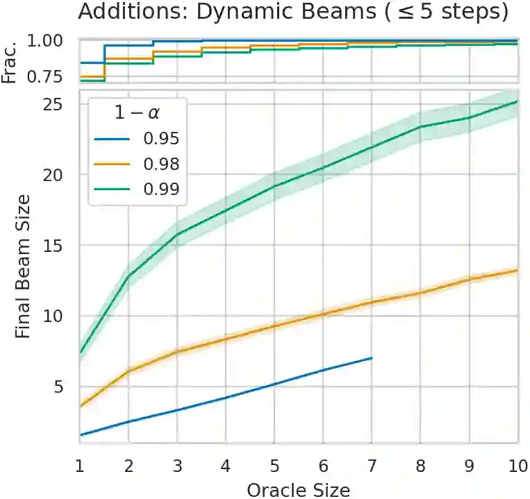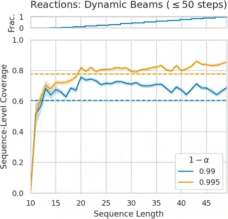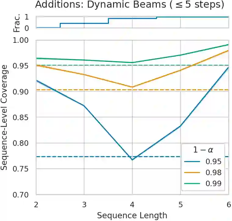 We introduce two new extensions to the beam search algorithm based on conformal predictions (CP) to produce sets of sequences with theoretical coverage guarantees. The first method is very simple and proposes dynamically-sized subsets of beam search results but, unlike typical CP procedures, has an upper bound on the achievable guarantee depending on a post-hoc calibration measure. Our second algorithm introduces the conformal set prediction procedure as part of the decoding process, producing a variable beam width which adapts to the current uncertainty. While more complex, this procedure can achieve coverage guarantees selected a priori. We provide marginal coverage bounds for each method, and evaluate them empirically on a selection of tasks drawing from natural language processing and chemistry.