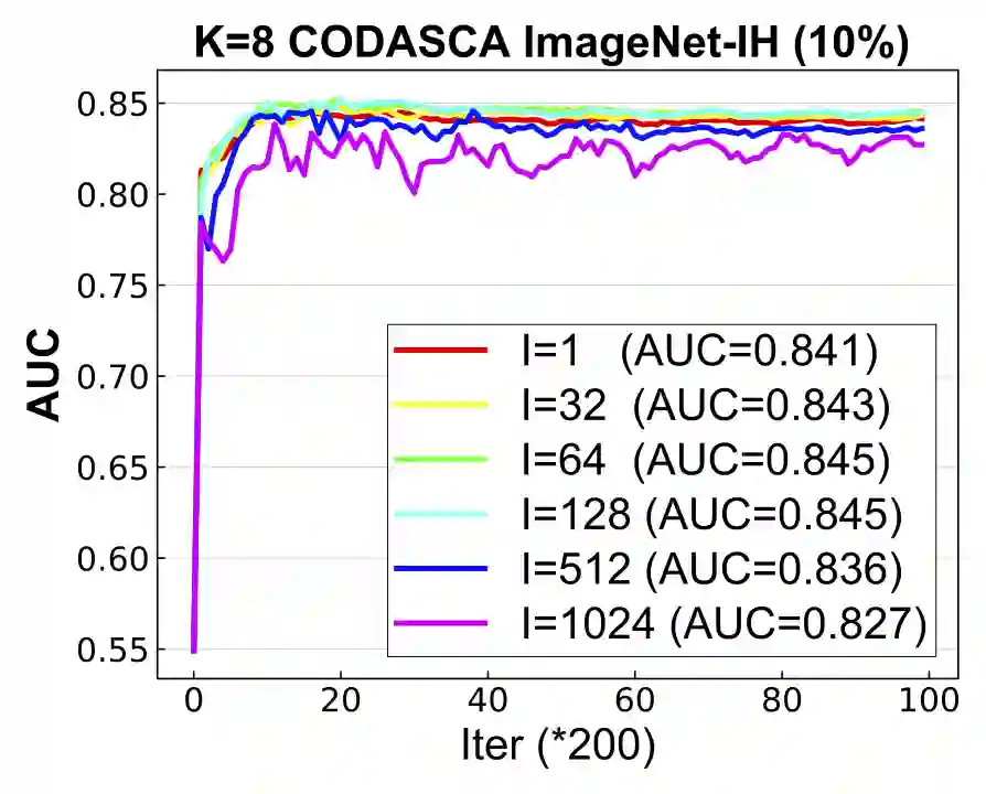 翻译:深AUC(ROC曲线下的区域) 最大化(DAM) 因其极有可能造成数据分类不平衡,最近引起了人们的极大关注。然而,关于Federal Deep AUC 最大化(FDAM)的研究仍然有限。与侧重于可分解的最小化目标的标准联合学习(FL)方法相比,FDM由于其最小化目标而变得更加复杂,与个别例子相比,它的最小化目标是不可分的。在本文中,我们建议改进FDAM的变量,通过以分布式方式解决流行的非Convex 强凝固的DAM 最小成型。DAM的配置也可以适用于非cive Comepal CAUC(FAUC 强凝固硬化硬化硬化软缩缩缩缩缩缩微缩图 ) 。与本文的一个惊人的结果是,拟议的计算法的通信复杂性与机器数量无关,也与准确性水平无关。我们FDAMMLA-LIRC数据库在基准数据集和不同组织的医学X光图像上的效率。我们的实验显示,ALIRC-RO-IA-C ASUM的成绩测试方法用于测试多种医院的数据。AUD-ILILUDA-C。AD-ILM的测试方法可以改进了A-I-IB-ID-ILUD-IB-IAS-I-C在A-IAS-IAS-IAS-IAS-IAS-IAS-IAS-I-C。