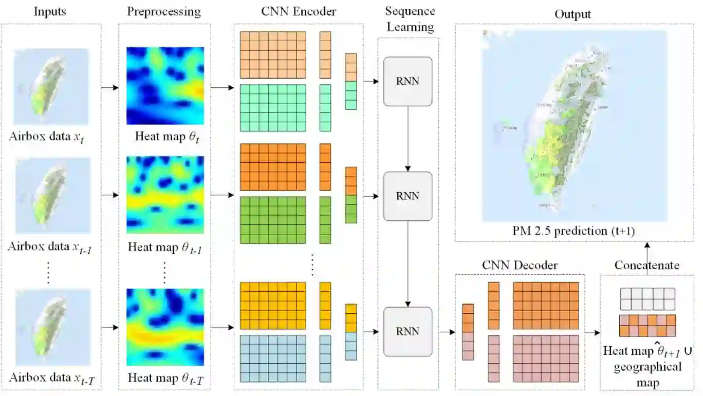 翻译:危害健康的PM2.5污染物的传播很难预测,因为它涉及许多大气变量。这些微微粒可以从源头迅速扩散到居民区,如果长期暴露的话,会增加呼吸道疾病的风险。PM2.5传播的预测系统提供了更详细和准确的信息,作为预警系统,以减少对社区的健康影响。根据转型计算的概念,我们在本文件中建议的方法可以计算通过无线传感器网络从大规模PM2.5传感器节点获得的数据集。在该计划中,在服务器节点上实施深层学习模型,以提取这些数据集的表面特征。这一研究是通过利用台湾空气质量监测系统的数据集进行的。这一研究提出了以革命性循环神经网络为基础的新模型,以生成预测图。一般来说,通过考虑空间和时间两方面的测量节点之间的联系,该模型能够提供准确的预测结果。因此,可以通过使用本文中提议的模型对PM2.5微粒污染物的传播进行精确监测。