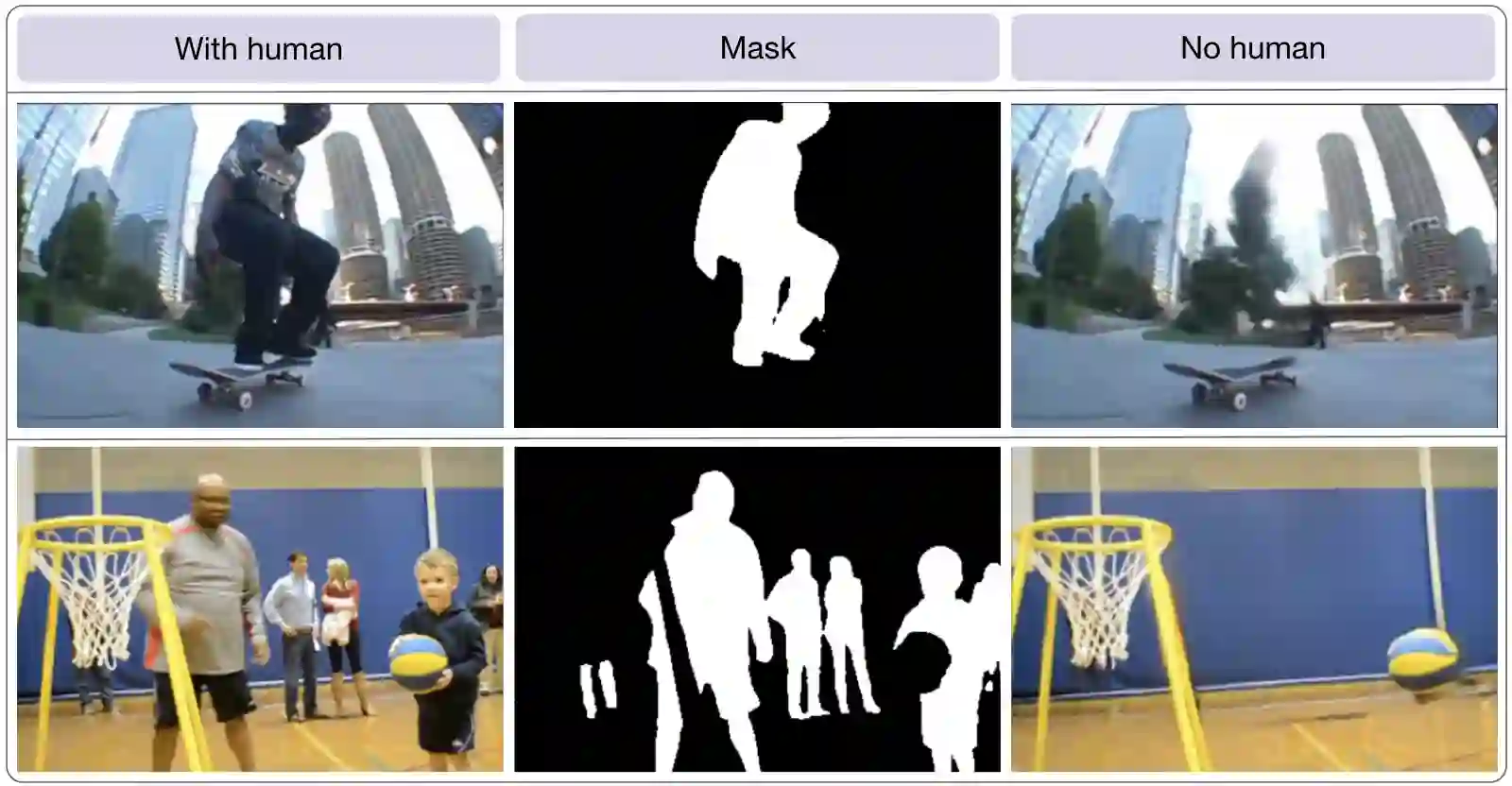 Pre-training on massive video datasets has become essential to achieve high action recognition performance on smaller downstream datasets. However, most large-scale video datasets contain images of people and hence are accompanied with issues related to privacy, ethics, and data protection, often preventing them from being publicly shared for reproducible research. Existing work has attempted to alleviate these problems by blurring faces, downsampling videos, or training on synthetic data. On the other hand, analysis on the transferability of privacy-preserving pre-trained models to downstream tasks has been limited. In this work, we study this problem by first asking the question: can we pre-train models for human action recognition with data that does not include real humans? To this end, we present, for the first time, a benchmark that leverages real-world videos with humans removed and synthetic data containing virtual humans to pre-train a model. We then evaluate the transferability of the representation learned on this data to a diverse set of downstream action recognition benchmarks. Furthermore, we propose a novel pre-training strategy, called Privacy-Preserving MAE-Align, to effectively combine synthetic data and human-removed real data. Our approach outperforms previous baselines by up to 5% and closes the performance gap between human and no-human action recognition representations on downstream tasks, for both linear probing and fine-tuning. Our benchmark, code, and models are available at https://github.com/howardzh01/PPMA .