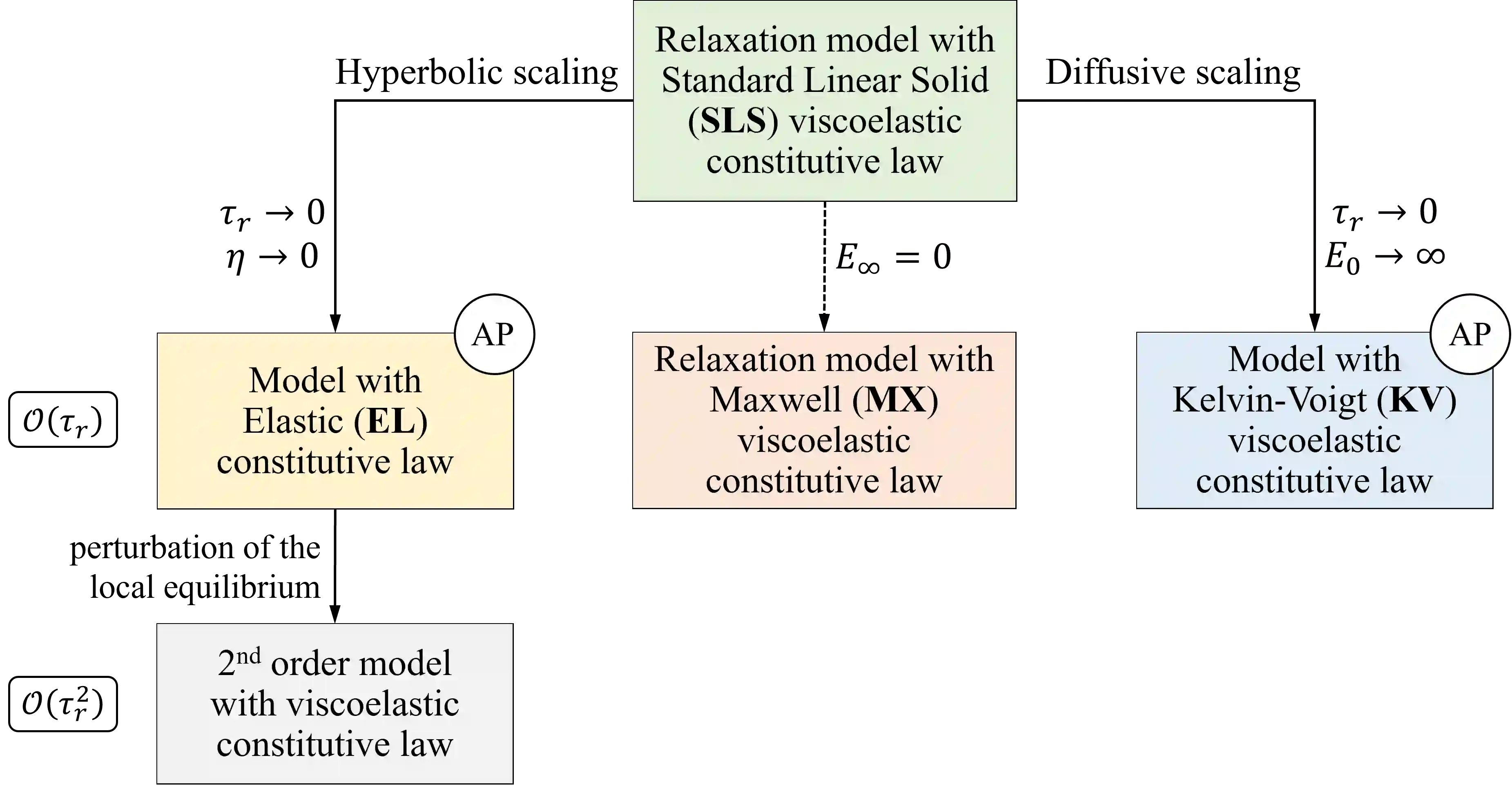 In this paper, a multiscale constitutive framework for one-dimensional blood flow modeling is presented and discussed. By analyzing the asymptotic limits of the proposed model, it is shown that different types of blood propagation phenomena in arteries and veins can be described through an appropriate choice of scaling parameters, which are related to distinct characterizations of the fluid-structure interaction mechanism (whether elastic or viscoelastic) that exist between vessel walls and blood flow. In these asymptotic limits, well-known blood flow models from the literature are recovered. Additionally, by analyzing the perturbation of the local elastic equilibrium of the system, a new viscoelastic blood flow model is derived. The proposed approach is highly flexible and suitable for studying the human cardiovascular system, which is composed of vessels with high morphological and mechanical variability. The resulting multiscale hyperbolic model of blood flow is solved using an asymptotic-preserving Implicit-Explicit Runge-Kutta Finite Volume method, which ensures the consistency of the numerical scheme with the different asymptotic limits of the mathematical model without affecting the choice of the time step by restrictions related to the smallness of the scaling parameters. Several numerical tests confirm the validity of the proposed methodology, including a case study investigating the hemodynamics of a thoracic aorta in the presence of a stent.