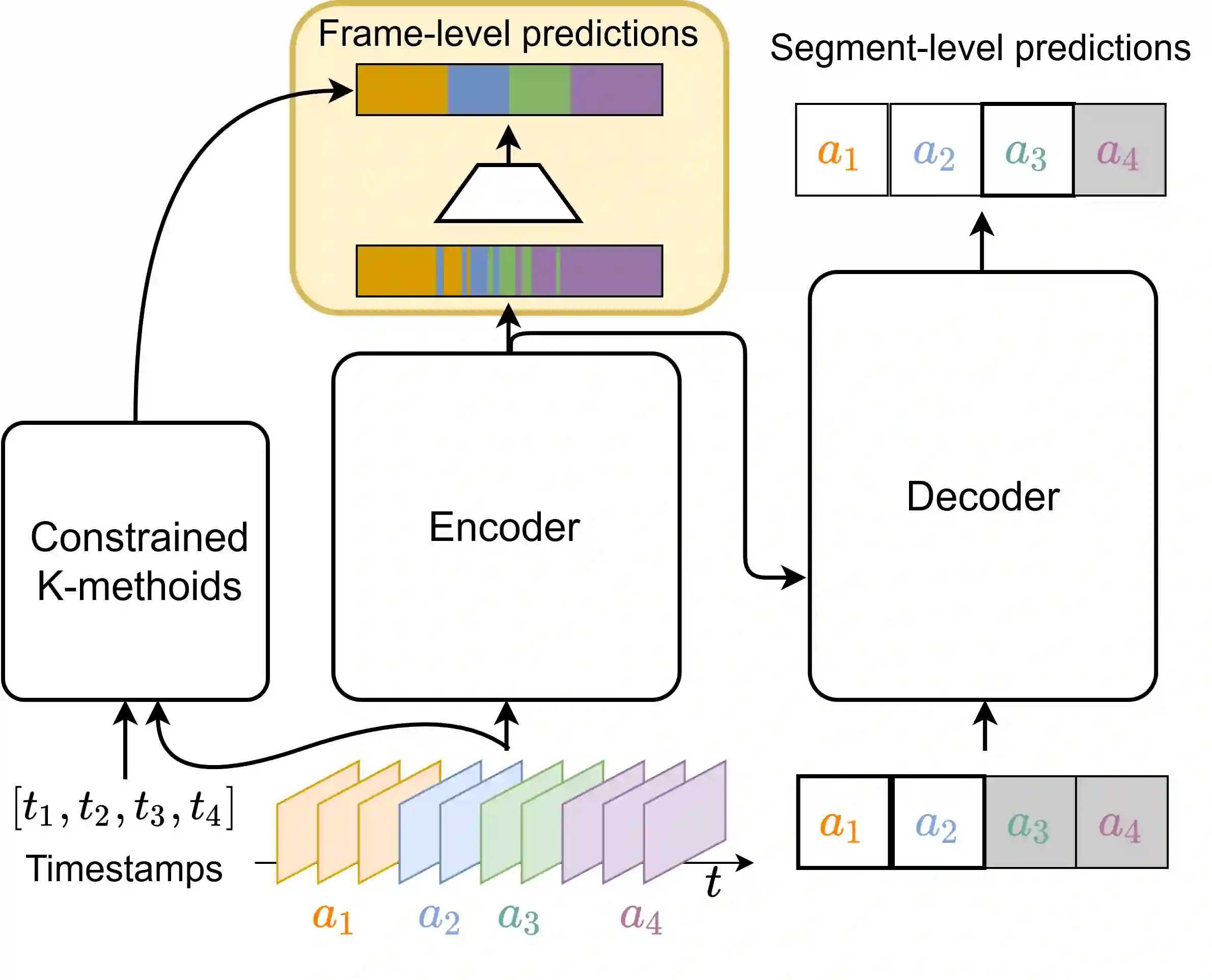 翻译:本文引入了通过序列序列( seq2seq) 转换视频动作分解的统一框架。 与当前最先进的框架级预测方法相比, 我们将动作分解视为一个后继2seq 翻译任务, 即将视频框架的序列映射到一个动作区段的序列中。 我们的拟议方法涉及标准的变换器后继2seq 翻译模型上的一系列修改和辅助损失功能, 以应对与短输出序列相对的长输入序列和相对较少的视频。 我们通过框架损失为编码器添加了一个辅助监督信号, 为隐含的时间段预测建议一个单独的校正解码器 。 最后, 我们扩展了我们的框架, 通过我们提议的限制 k- medoids 算法监督的时间戳设置生成假拼图 。 我们的拟议框架在完全和时间设置上都运行一致, 在多个数据集上表现优于或相互竞争的状态 。