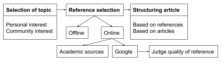 References are an essential part of Wikipedia. Each statement in Wikipedia should be referenced. In this paper, we explore the creation and collection of references for new Wikipedia articles from an editors' perspective. We map out the workflow of editors when creating a new article, emphasising how they select references.