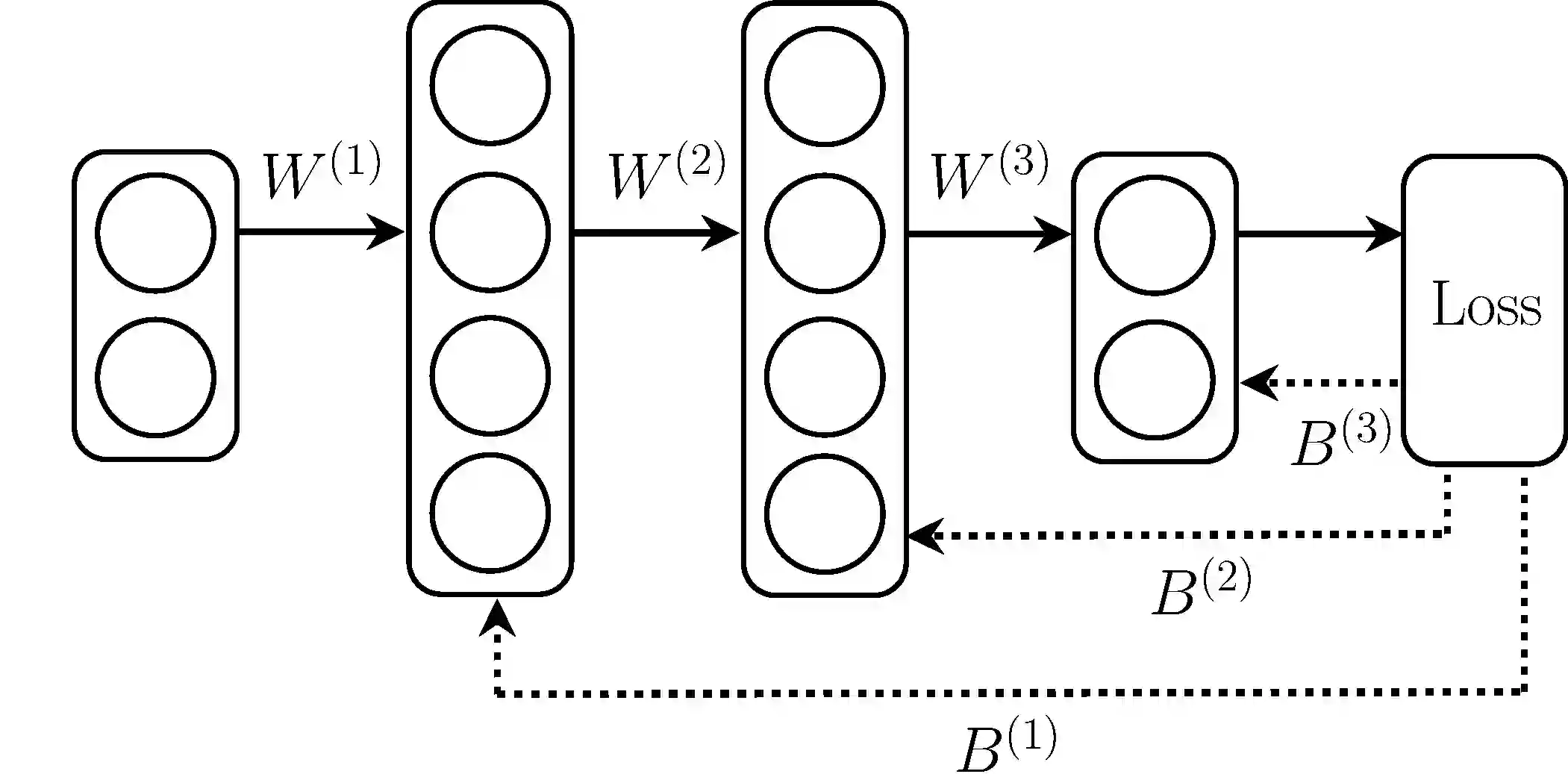 Supervised learning in deep neural networks is commonly performed using error backpropagation. However, the sequential propagation of errors during the backward pass limits its scalability and applicability to low-powered neuromorphic hardware. Therefore, there is growing interest in finding local alternatives to backpropagation. Recently proposed methods based on forward-mode automatic differentiation suffer from high variance in large deep neural networks, which affects convergence. In this paper, we propose the Forward Direct Feedback Alignment algorithm that combines Activity-Perturbed Forward Gradients with Direct Feedback Alignment and momentum. We provide both theoretical proofs and empirical evidence that our proposed method achieves lower variance than forward gradient techniques. In this way, our approach enables faster convergence and better performance when compared to other local alternatives to backpropagation and opens a new perspective for the development of online learning algorithms compatible with neuromorphic systems.