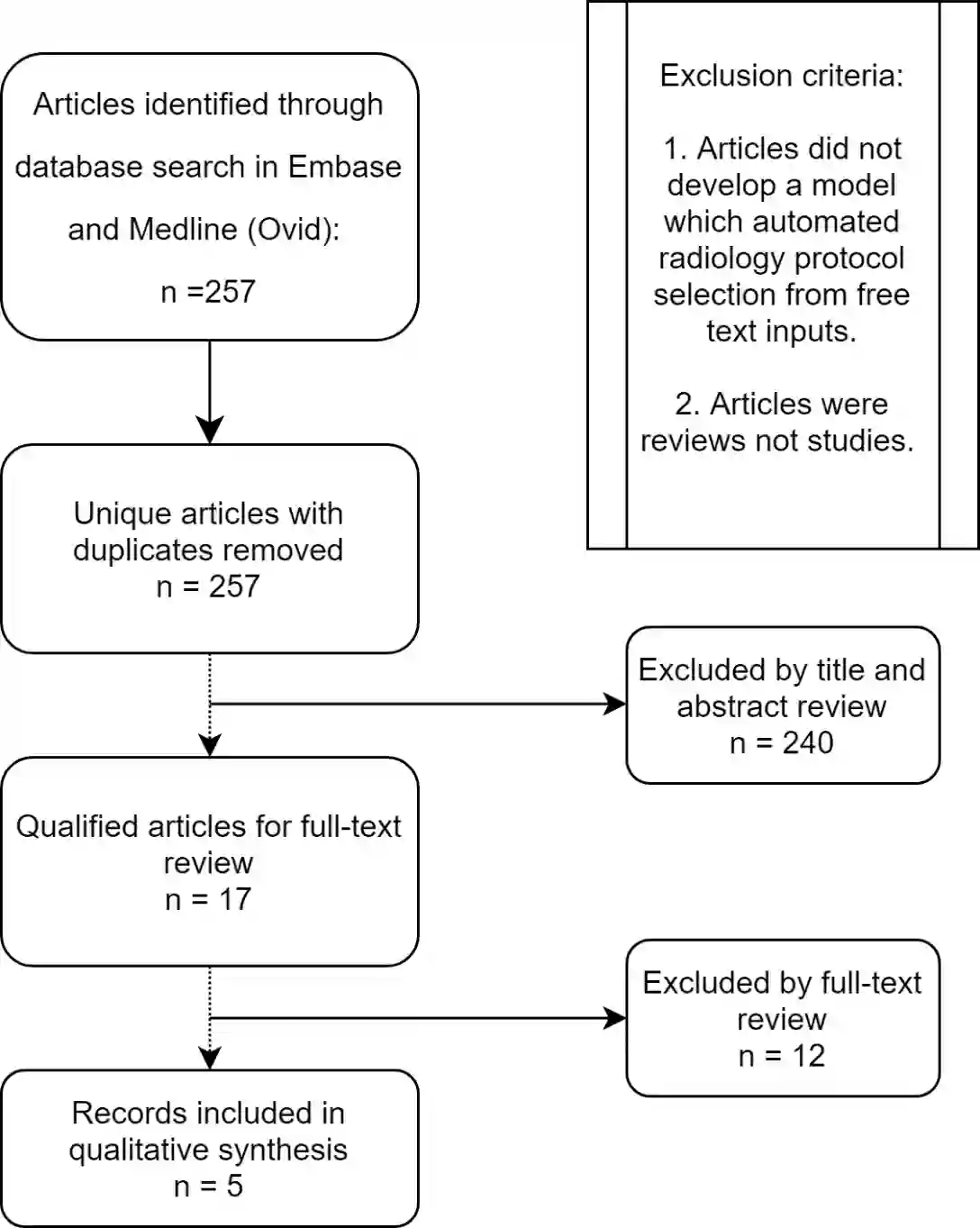 Machine learning (ML) is a subfield of Artificial intelligence (AI), and its applications in radiology are growing at an ever-accelerating rate. The most studied ML application is the automated interpretation of images. However, natural language processing (NLP), which can be combined with ML for text interpretation tasks, also has many potential applications in radiology. One such application is automation of radiology protocolling, which involves interpreting a clinical radiology referral and selecting the appropriate imaging technique. It is an essential task which ensures that the correct imaging is performed. However, the time that a radiologist must dedicate to protocolling could otherwise be spent reporting, communicating with referrers, or teaching. To date, there have been few publications in which ML models were developed that use clinical text to automate protocol selection. This article reviews the existing literature in this field. A systematic assessment of the published models is performed with reference to best practices suggested by machine learning convention. Progress towards implementing automated protocolling in a clinical setting is discussed.