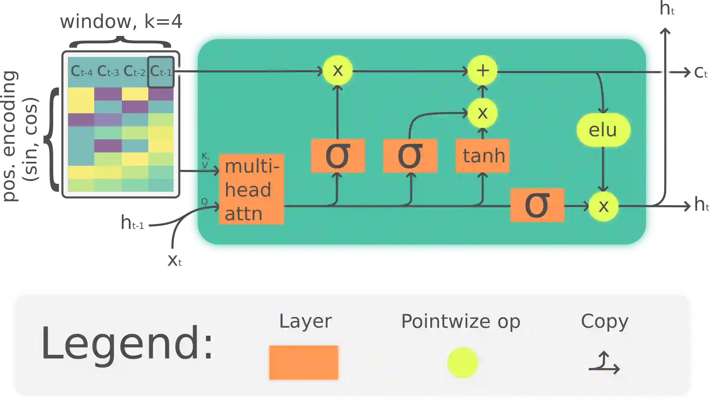 翻译:线性关注常规神经网络(LARNN) 是一个来自长期短期内存(LSTM) 的经常性关注模块, 它来自长期短期内存( LSTM) 单元格和意识内存( RNN) 2 的理念。 是的, LARNN 。 LARN 对有限的窗口大小的窗口内存( 美元) 使用其过去的单元格状态值。 公式还来自 Batch 正常 LSTM (BN- LSTM) 单元格和多主管注意机制的变换器网络。 多主管注意机制在单元格内被使用, 这样它就可以在关注窗口内查询自己的过去值$美元。 这有效果, 通过注意机制来提升 Excentor35 的等级。 LARNNN可以进行复杂的查询, LARNNN 过去的等级, LARNN可以对过去的内存信息进行复杂的查询, LARNT 和L 的内存取的内存取结果是更精确的。 这要归因于, 它在第一个阵列中, 它的内, 它的内存取的内存取结果是更精确的, 在最后一步内存中, 它的顺序里, 它会循环里, 它会循环里, 它会循环中, 它会比内存的内存取的内存取的内存的结果是更接近, 它会循环到内存, 。